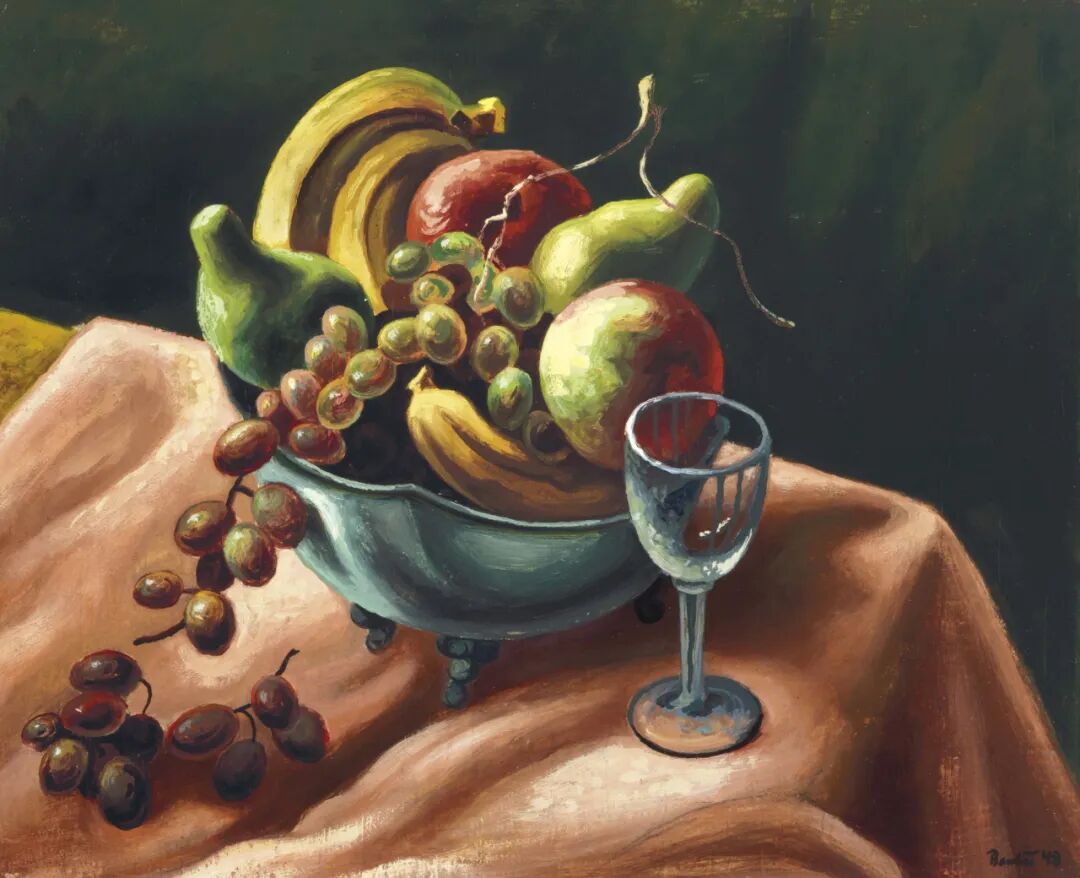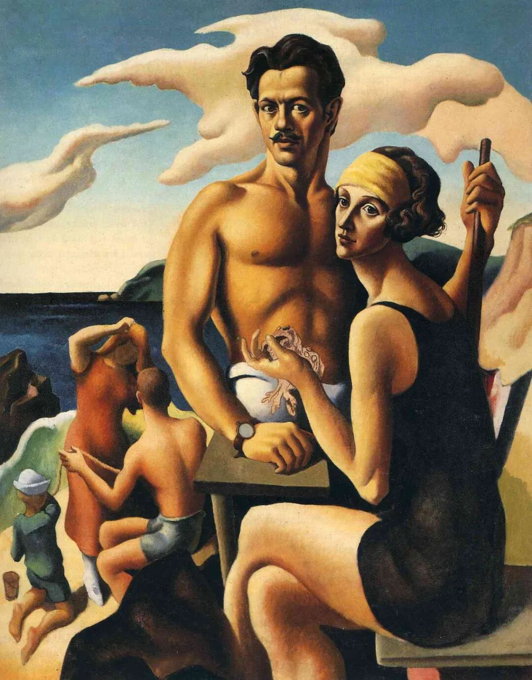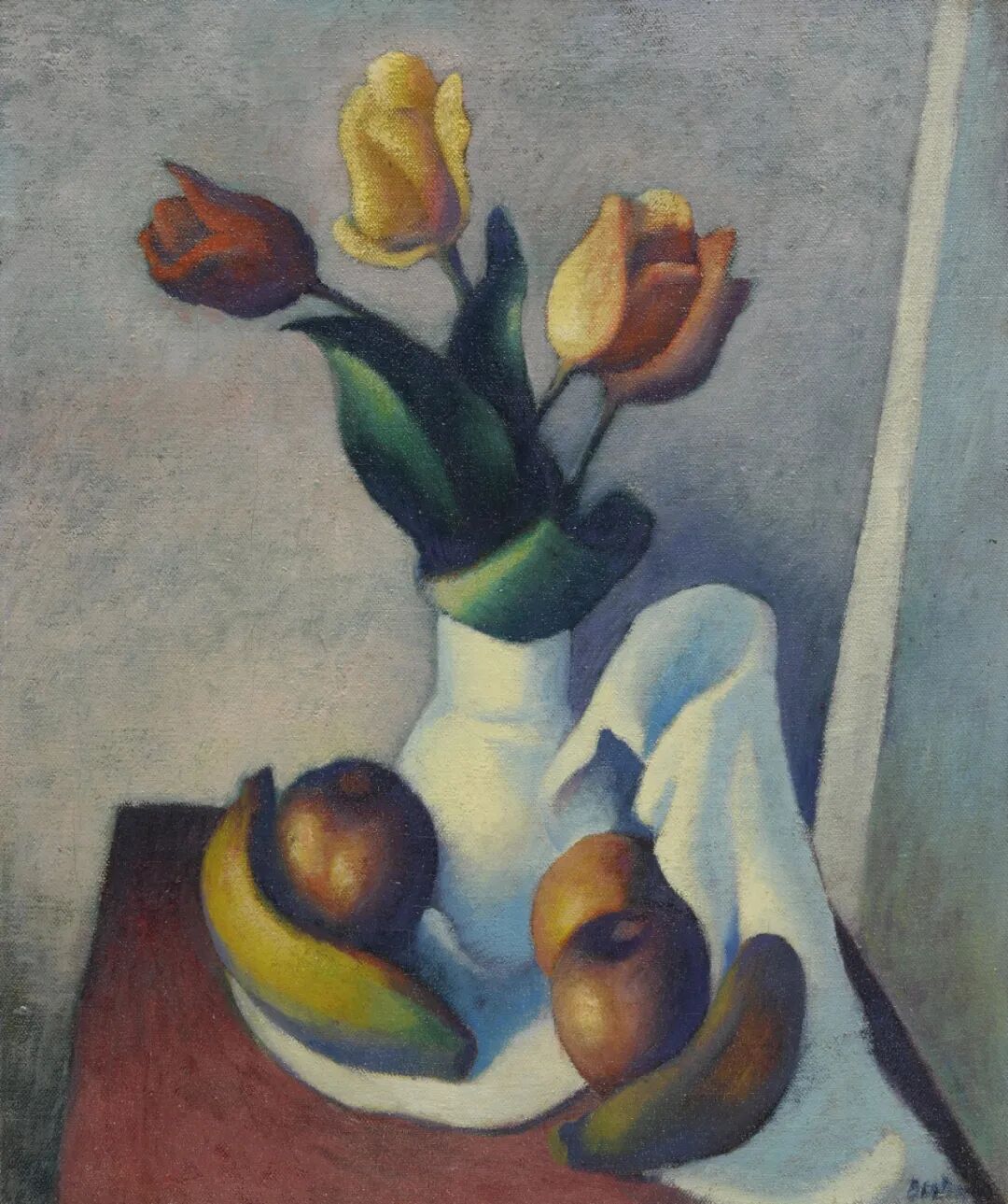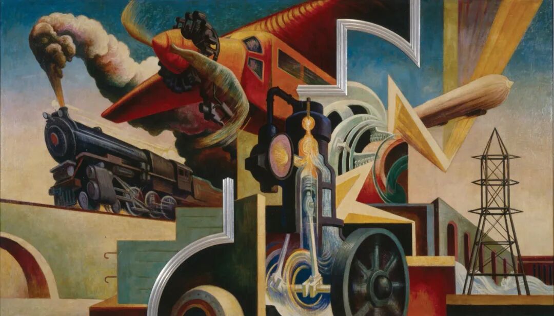 第二年,本顿前往巴黎,在朱利安学院学习。在那里,他遇到了加州艺术家斯坦顿-麦克唐纳-赖特(美国,1890-1973),并开始尝试麦克唐纳-赖特的抽象画同步风格。