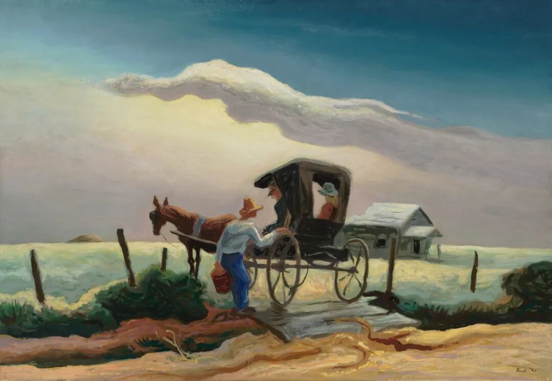 二战后,地区主义不再流行,但本顿在接下来的30年里继续画农村题材,包括一些壁画的委托。