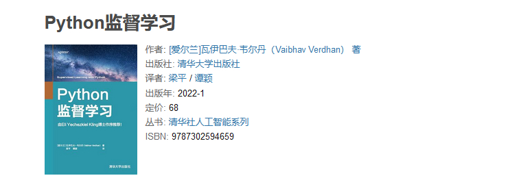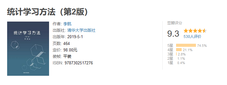 新版改名为《机器学习方法》,是计算机及其应用领域的一门重要学科。本书分为监督学 习和无监督学习两篇,全面系统地介绍了统计学习的主要方法。包括感知机、k 近邻法、朴素贝叶斯法、决策树、逻辑斯谛回归与最大熵模型、支持向量机、提升方法、EM 算法、隐马尔可夫模型和条件随机场,以及聚类方法、奇异值分解、主成分分析、潜在语义分析、概率潜在语义分析、马尔可夫链蒙特卡罗法、潜在狄利克雷分配和 PageRank 算法等。