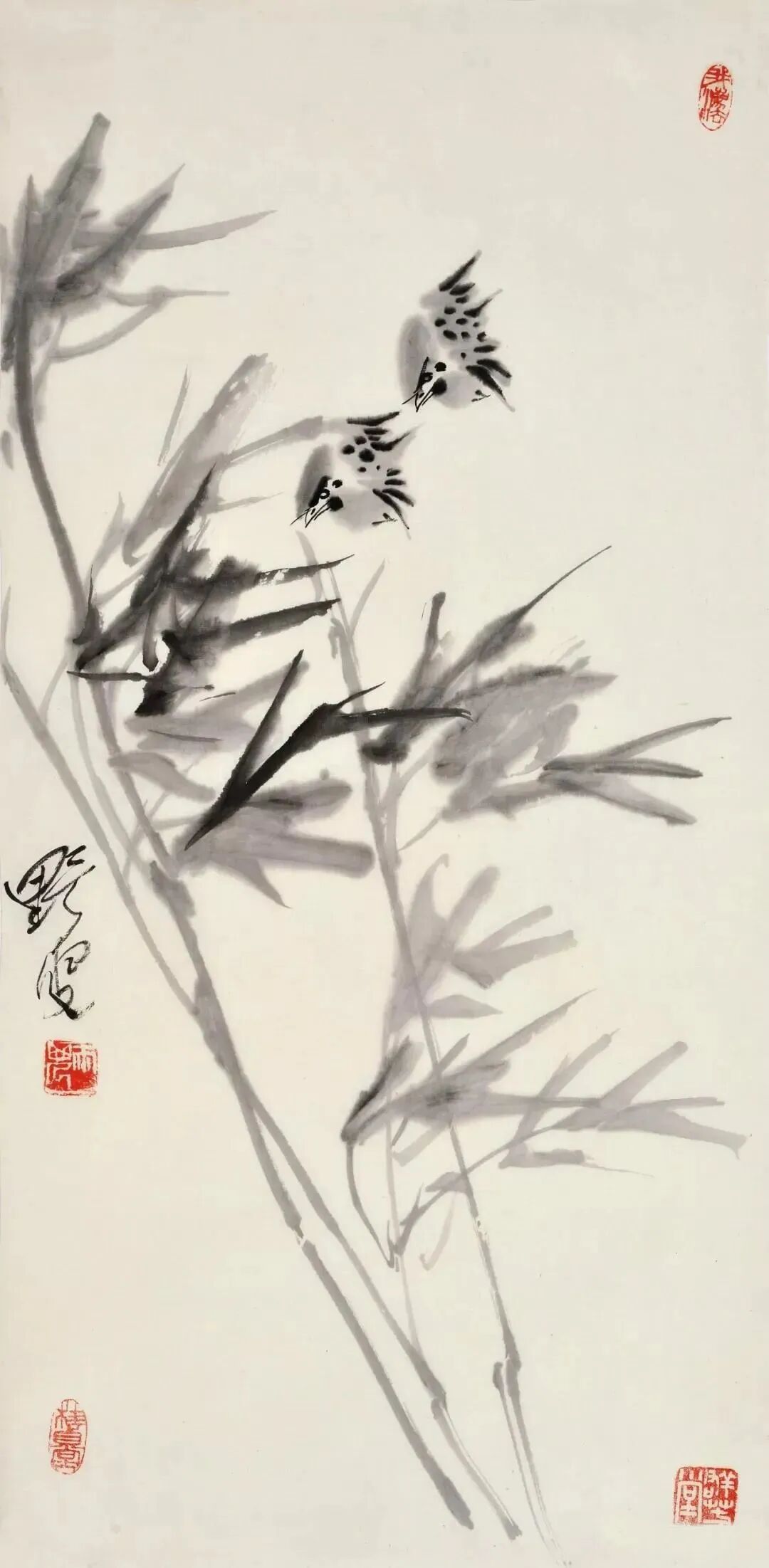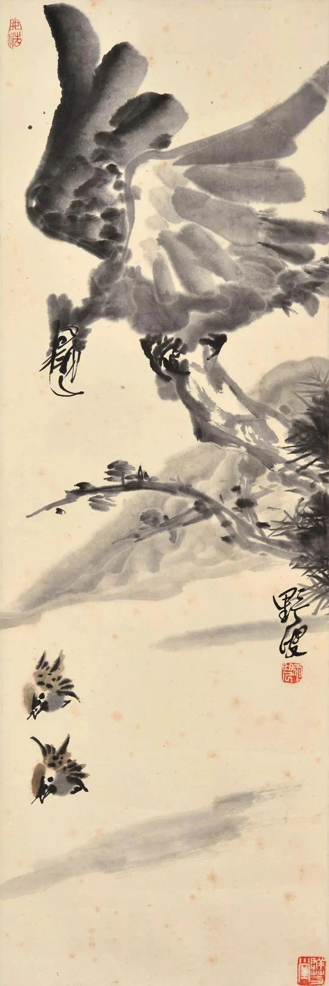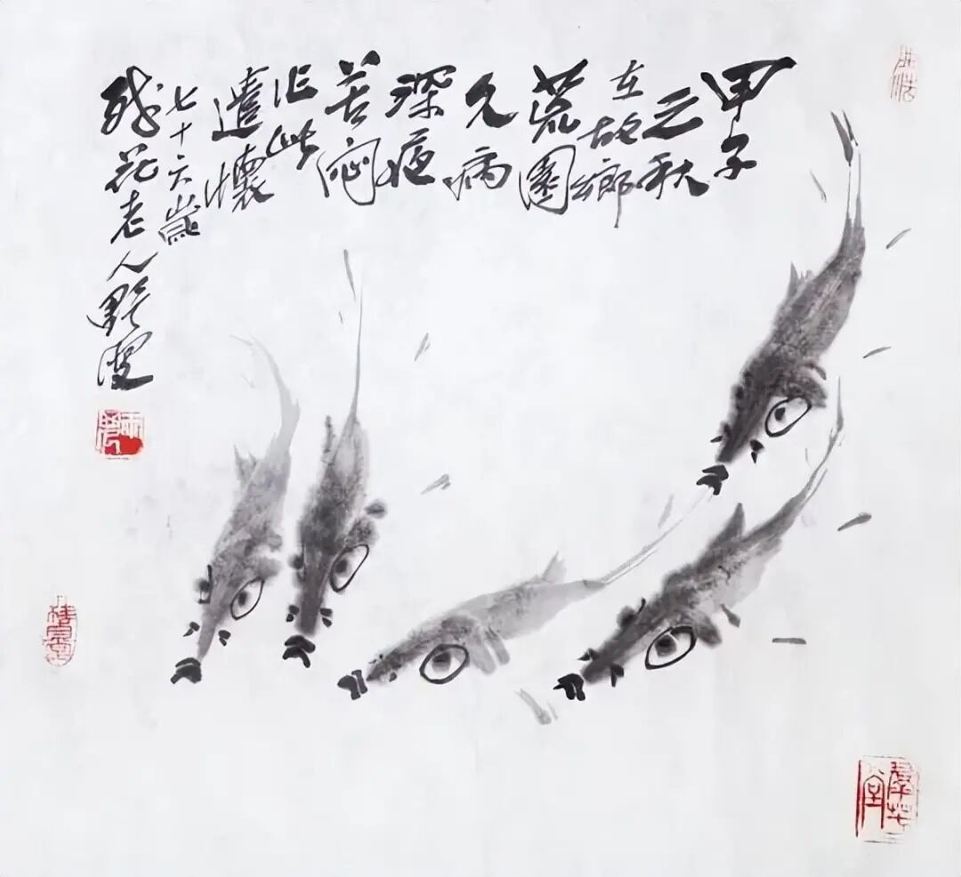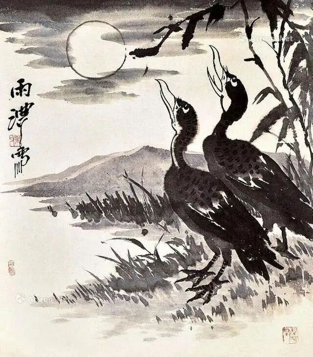 蒋雨浓的作品用笔老辣遒劲,力透纸背,虽一点之微却落纸有声,特别是他的鱼虫花鸟画,不受传统花鸟题材局限,一经摄入笔底,令人耳目一新。