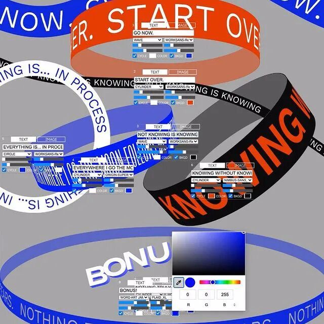设计师Kiel D. Mutschelknaus先是在奥古斯塔娜学院攻读艺术,后搬到底特律在克兰布鲁克艺术学院攻读2D设计硕士学位。毕业后,他成为马里兰艺术学院艺术平面设计系的全职教员。Kiel对数学很感兴趣,他常在Youtube上学习一些3D和编码方面的知识,研究图形运动,将艺术与技术、科学相结合。作品兼顾实验性字体和排版,可以给用户一种独特和个性化的感觉, 并根据具体项目进行定制。