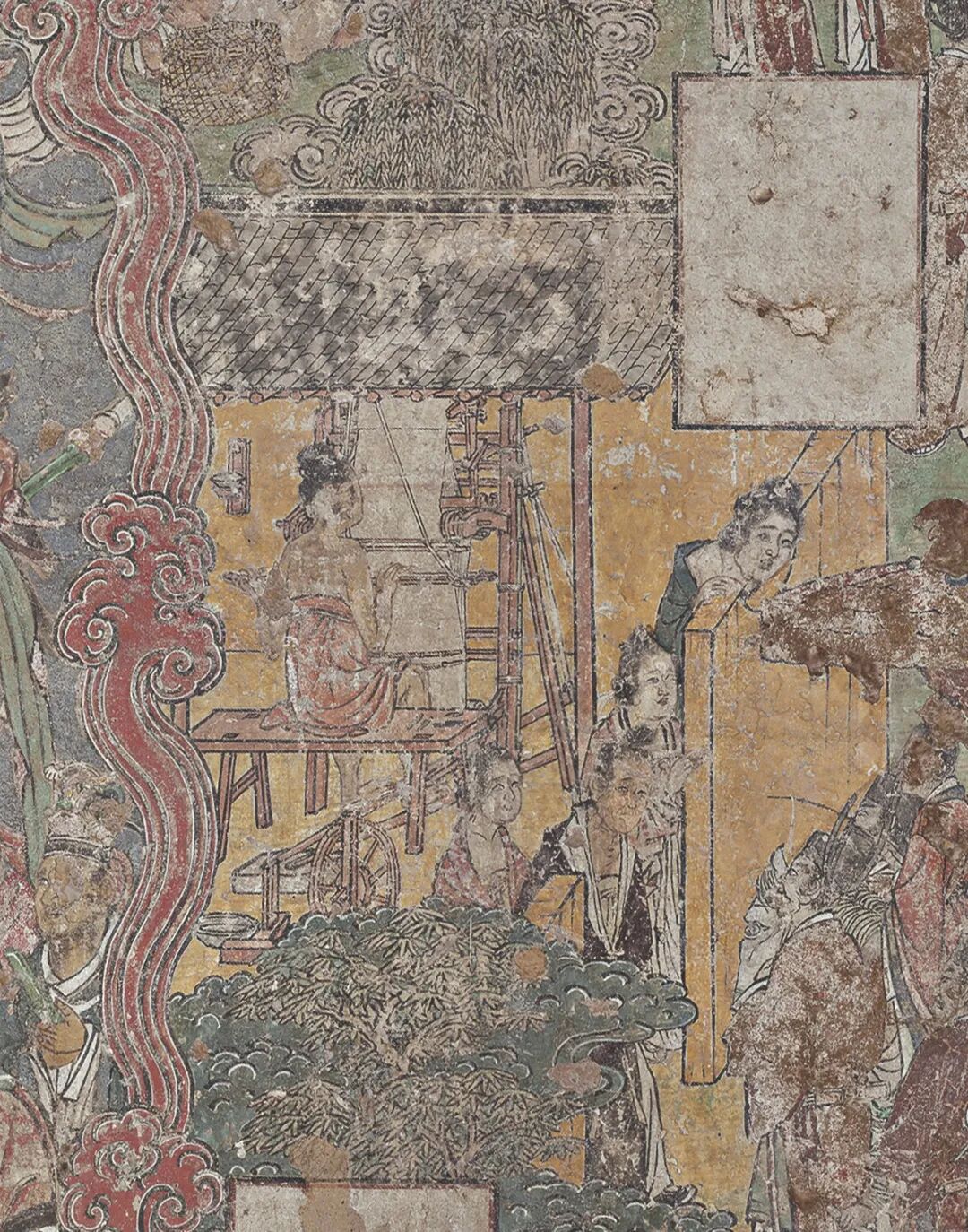 《大方便佛报恩经变·善友太子本生》纺织作坊建筑图像
