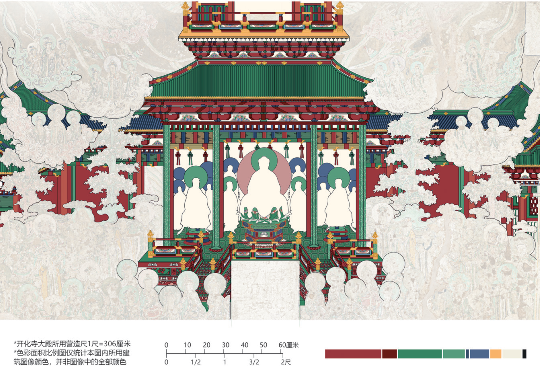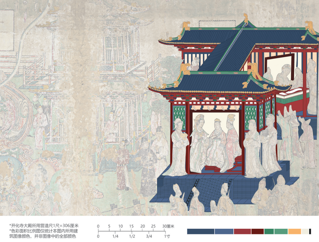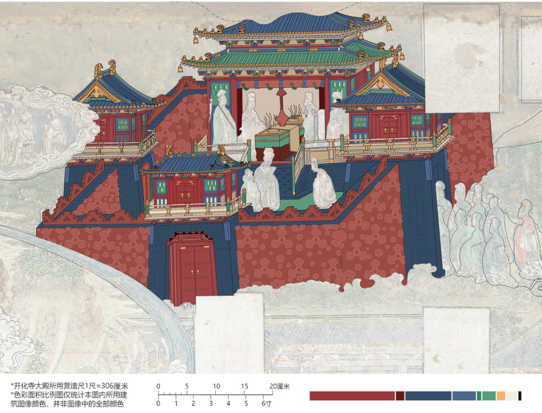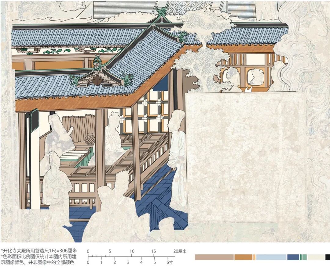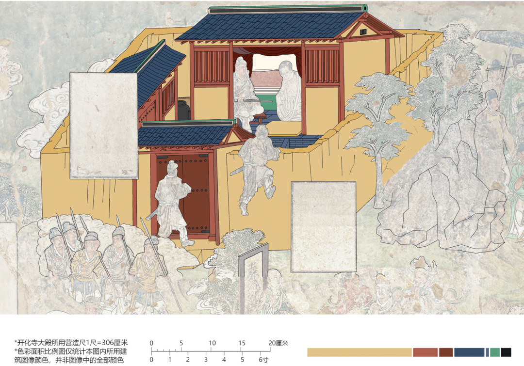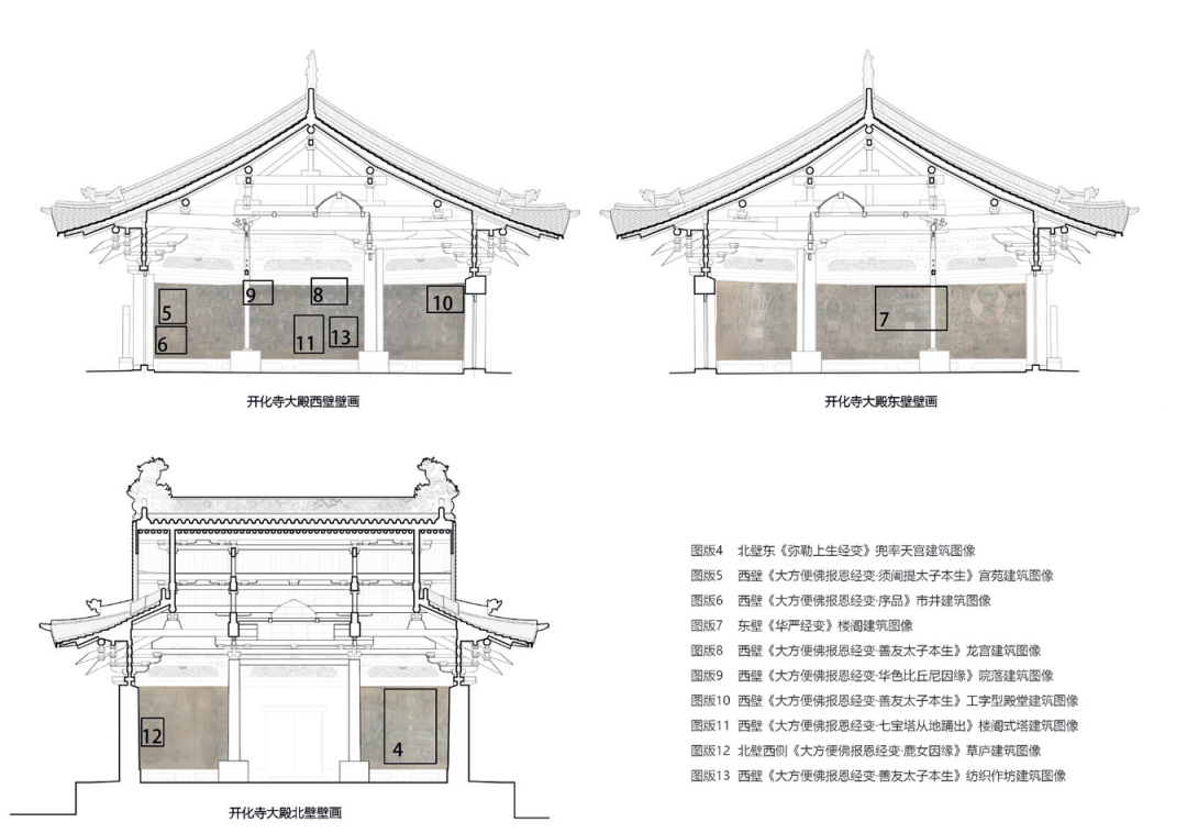 开化寺位于山西省高平县东北舍利山南麓,其大雄宝殿主体为北宋遗构,殿内东、西、北三面存有绘制于北宋元祐壬申年正月至绍圣丙子年九月间(1092—1096)的精美佛教壁画。该组壁画以界画的形式表现了多种多样的建筑形制、复杂的空间和丰富的色彩与装饰,为诸多已消逝的北宋建筑做法保存了珍贵的形象资料,也是中国古代建筑画中视觉表达和空间塑造方法的珍贵例证。