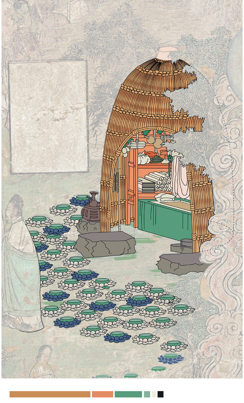 《大方便佛报恩经变·鹿女因缘》草庐建筑图像