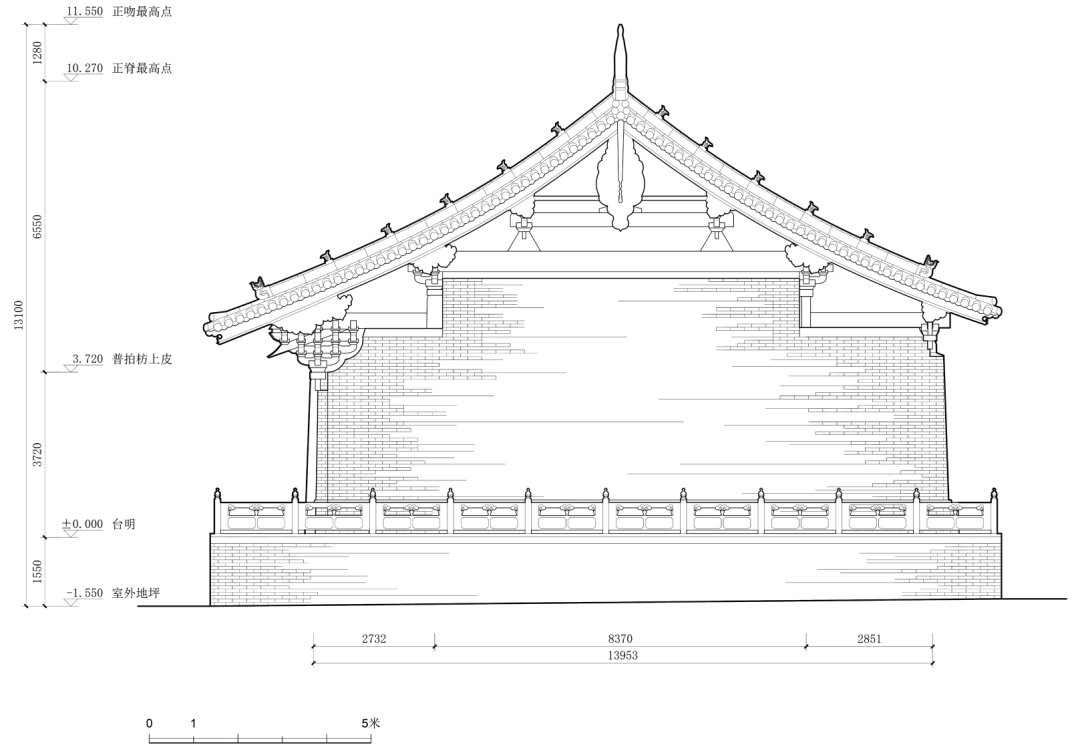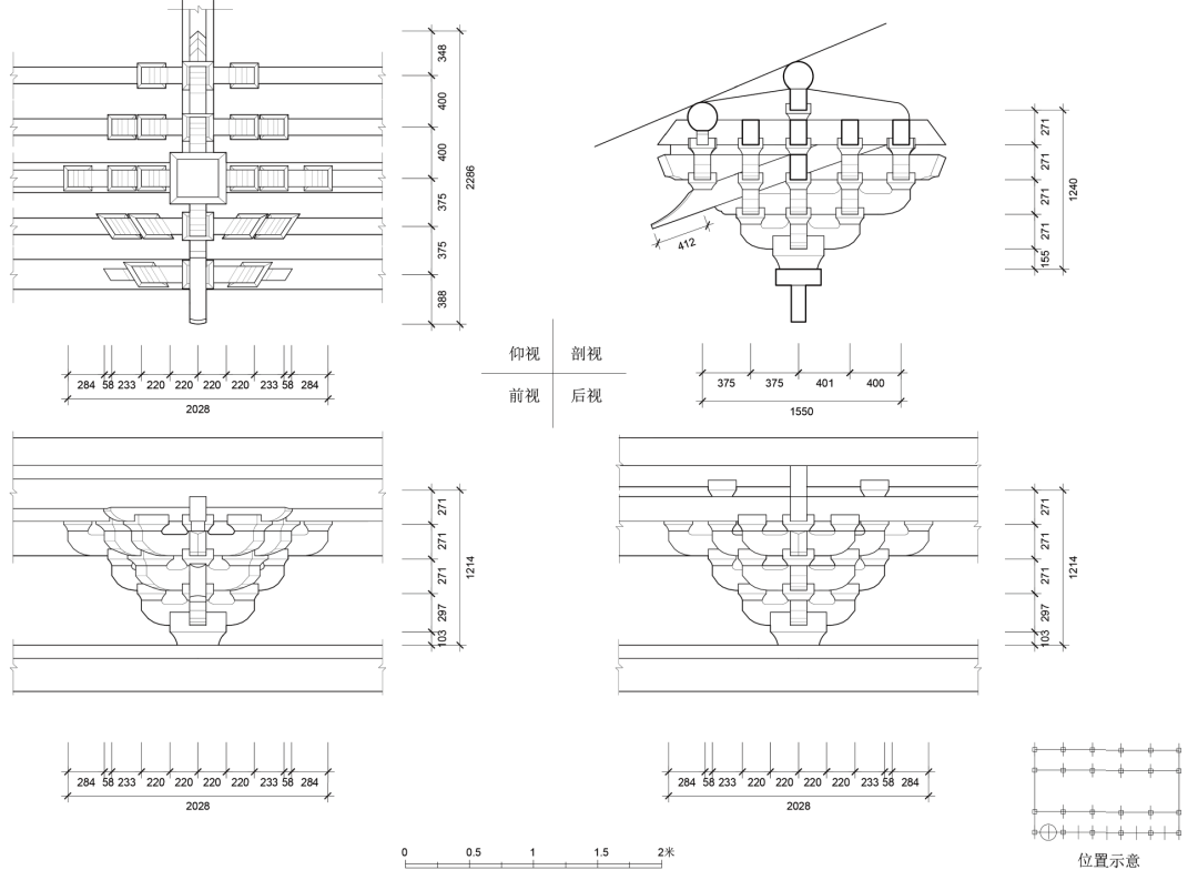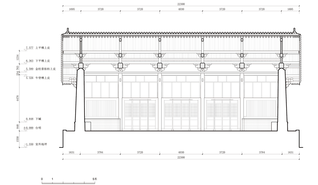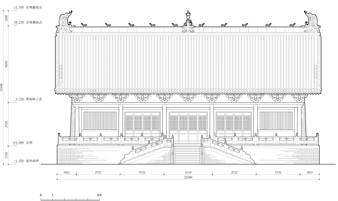 2021 年6 月底,清华大学建筑学院于山西柳林香严寺展开了为期一周的测绘课程。本次测绘由刘畅担任指导教师,赵寿堂、迟雅元、侯欣江担任助教,测绘方式以手工测量和摄影测量为主。潘恒言、何谐、兰煐棋、朱珍妮等23 名本科生分为四组,完成了山门、大雄殿、慈氏殿、毗卢殿四座建筑的测绘工作。其中,大雄殿测图由何谐、闭楚苗、袁子凌、陈筱儒、芶静怡、徐世祺、侯悦欣绘制,赵寿堂整理完成。