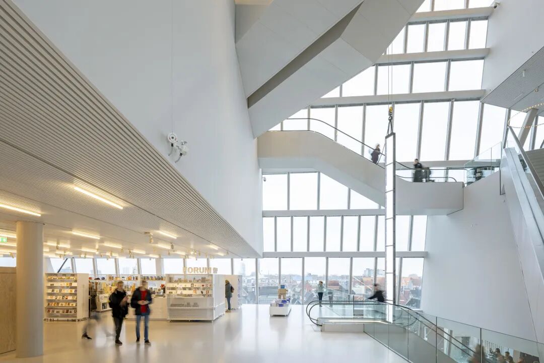 格罗宁根论坛是一个集图书馆、博物馆和电影院功能于一体的文化综合体,所有功能都包含在一个体量中,屋顶上有一个观景台,可以一览无余地欣赏周围的城市肌理。一个空隙穿过所有楼层的中心,主要循环围绕中心。安静的阅览室设有单独的座位、共同工作区、礼堂、电影院、展览空间等,布置在不同的楼层。