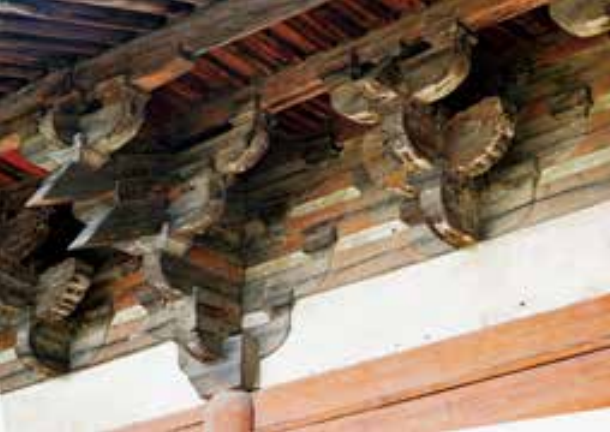 明清时期,伴随结构技术的发展,梁柱结合日趋紧密,斗拱的结构作用被明显削弱,体量随之大大缩小,昂已全部变为假昂。此时斗拱逐渐从最重要的檐部支撑结构,转化为近乎檐部装饰的构件。与之相应,檐下斗拱数量明显增加,排列密集,远远望去,宛如一条凸凹变化的立体装饰带,与佛光寺檐下形象分明、健硕雄壮的早期斗拱造型迥然不同。