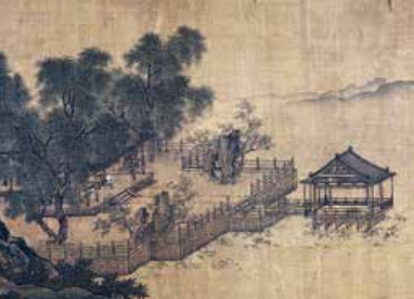 两宋士大夫园林多为私园,主要供主人游憩休养,北方园内多花木而少山石,南方园林则盛行叠山理水的做法,尤以江南地区最为发达。南宋画家刘松年的《四景山水图—夏景》就描绘了一座江南地区的临水园林。