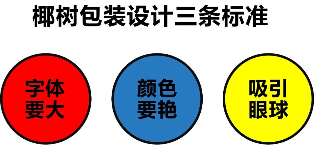 如果你在超市的货架上看一圈,椰树的风格确实很容易在众多的饮料产品里跳出来。这得益于王光兴在设计包装时特意定下三条标准——“字要大、颜色要艳、能吸引眼球”。