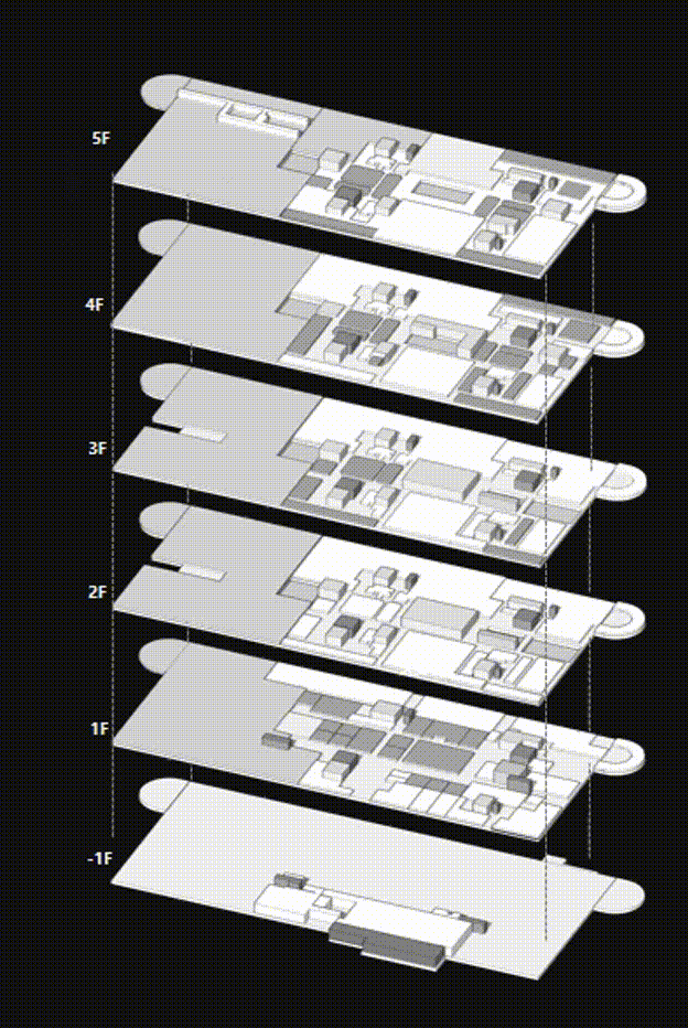 建築本身進深大、單層面積大、屋面面積大、首層及B1層層高較高等等問題,對解決建築的中部採光、水平動線及首層人流疏散及管理問題做出了高效且兼具關懷的規劃。