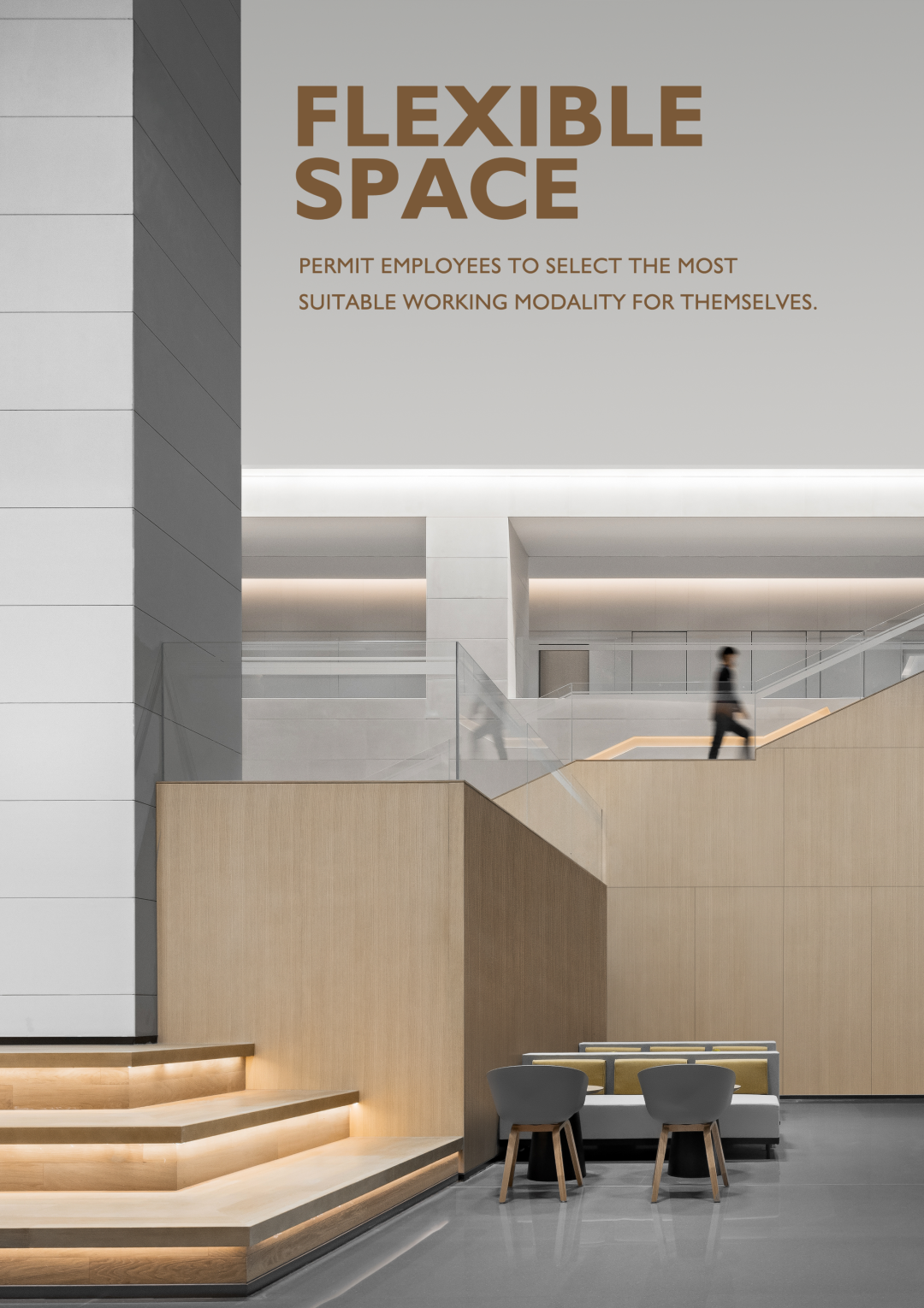龍湖在未來發展中,提出了秉承“空間即服務”的戰略,在集團辦公大樓的設計規劃中,空間服務的理念一脈相承。服務與個體的連結需要“空間”作為載體,通過構建合適的生活和工作空間,把困居於工位上的員工,從孤島化的工作空間中釋放出來,服務他們日常所需的工作、社交和精神需求。