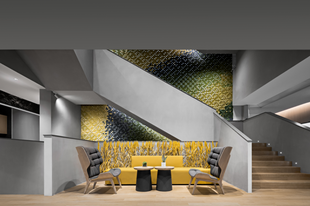 休閒區、分享區、水吧區、洽談區,私密洽談盒子形式置入坡道空間,多種複用功能豐富了坡道的使用形式,增強空間與人之間的互性。