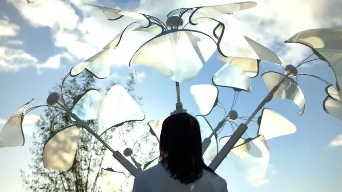 Paralull是一个可以随身携带的花瓣状的雨伞,它让每个人都可以在城市的各个角落体验噪音的净化。为了帮助使用者专注于听觉感知,并考虑到视觉的最小影响与环境的最亲密联系,团队将对声音的图形反应设计成具有不同透明度的交互模式。