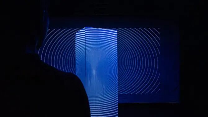 实时映射与被追踪的观众相对于感知对象的位置。通过结合视觉和空间特征,创造了一种空间感的错觉,且3D物理空间将会缩小为2D。作为观众当前时间和空间的结果,视觉响应对象和背景的特定视觉创建了一个覆盖观众物理空间感知的反馈循环。