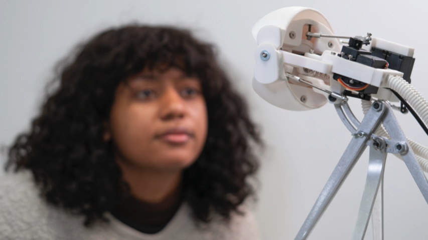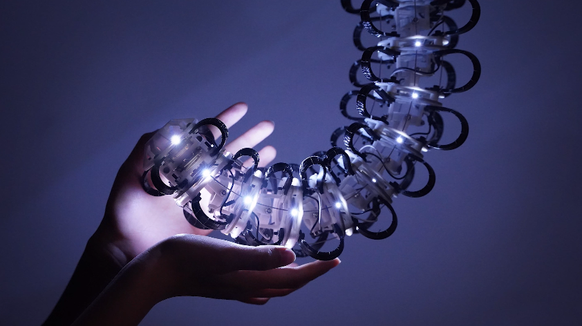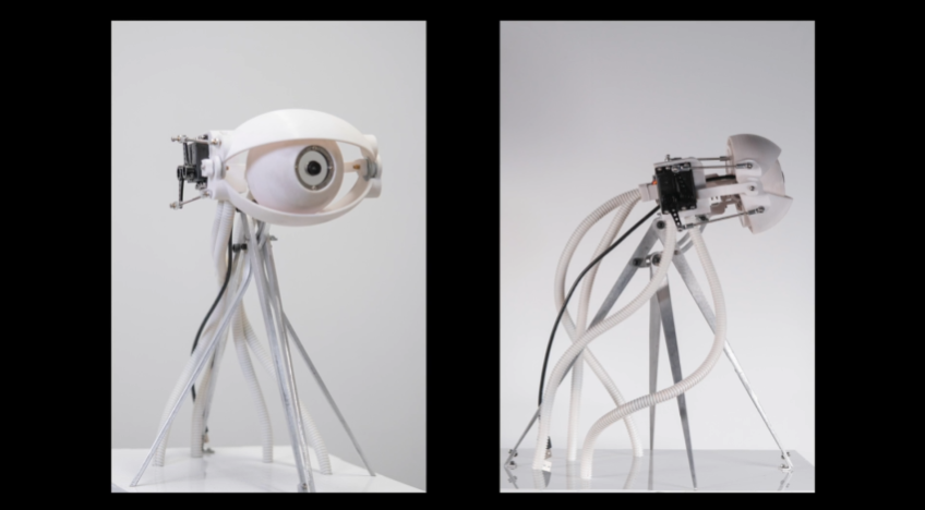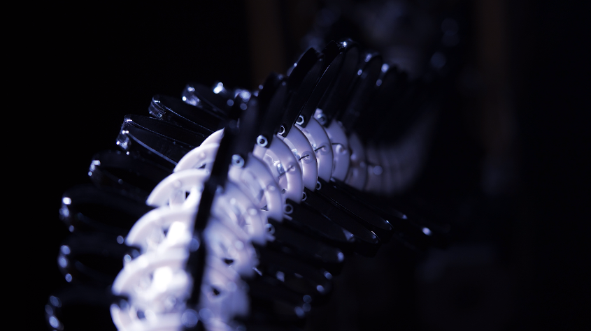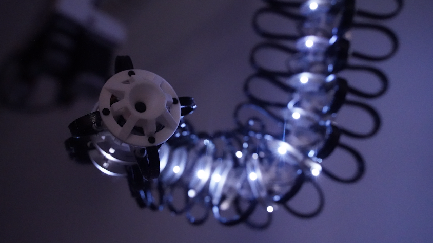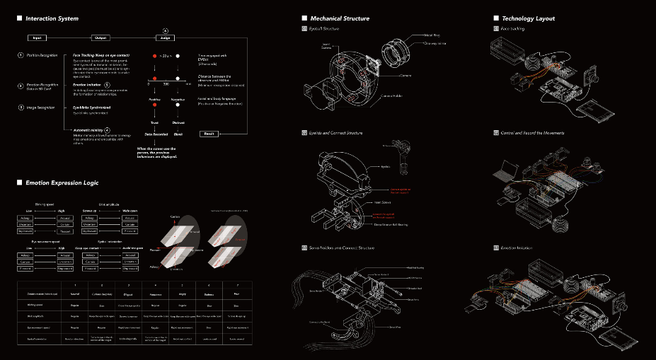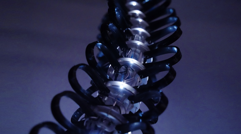 四个马达驱动Isaac的四个自由度,而微控制器印刷电路板位于每个椎体内,体现了Isaac身体的触摸输入和灯光输出。Isaac会试图吸引任何进入其身体空间的人去触摸,因为触摸可以让Isaac感知参与者在戳、抚摸和搔弄机器人表面时的详细反应。当与Isaac相处时,参与者可以体验到一种奇怪的亲密感,这种感觉在当代的人机界面中经常被忽略。