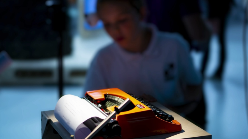 机械打字机是一个过时的时代,但它仍然是艺术和文学中机械化和进步的有力象征。通过拼接数字和模拟,新的生命被带入机器,使其成为一个主要的表演者,能够对周围的环境做出反应,并按照自己的意愿进行创作。