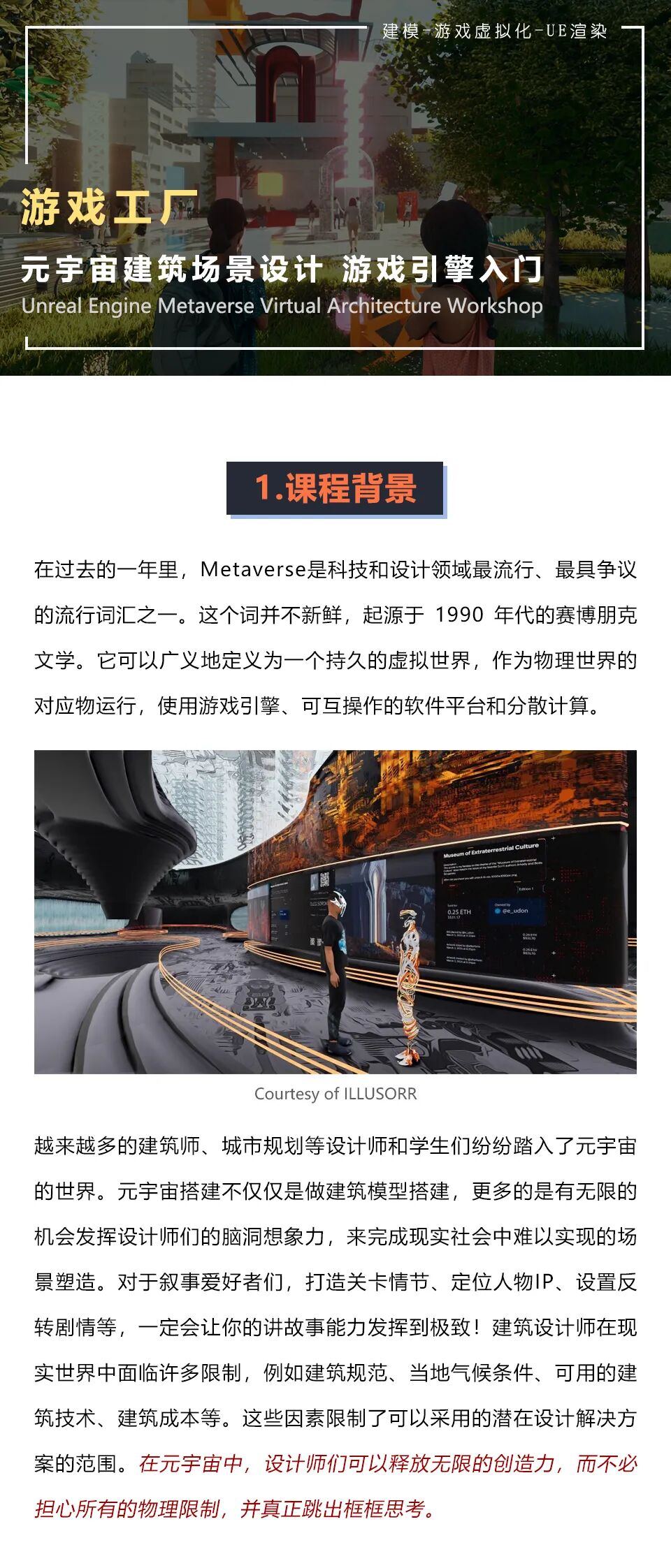 正发生2023-07-24 UCL导师带你进击元宇宙游戏世界 本文来自微信公众号“UniDesignLab”(ID:UniDesignLab)。大作社经授权转载,该文观点仅代表作者本人,大作社平台仅提供信息存储空间服务。 TAGS: 培训课程 相关文章2022年10月书法也有别…珠宝名表璀璨节日缤纷 | …MVRDV 受邀出席武汉大…黎晓亮:三个展 | 一场影…卡塔尔世界杯开幕式 土豪风…NFT行业周报:淘宝小程序…大师云集 • 献策狮城 |…【海外】《最后生还者2》制…2022年12月《综合艺术…索尼推出的首款汽车将成为“…