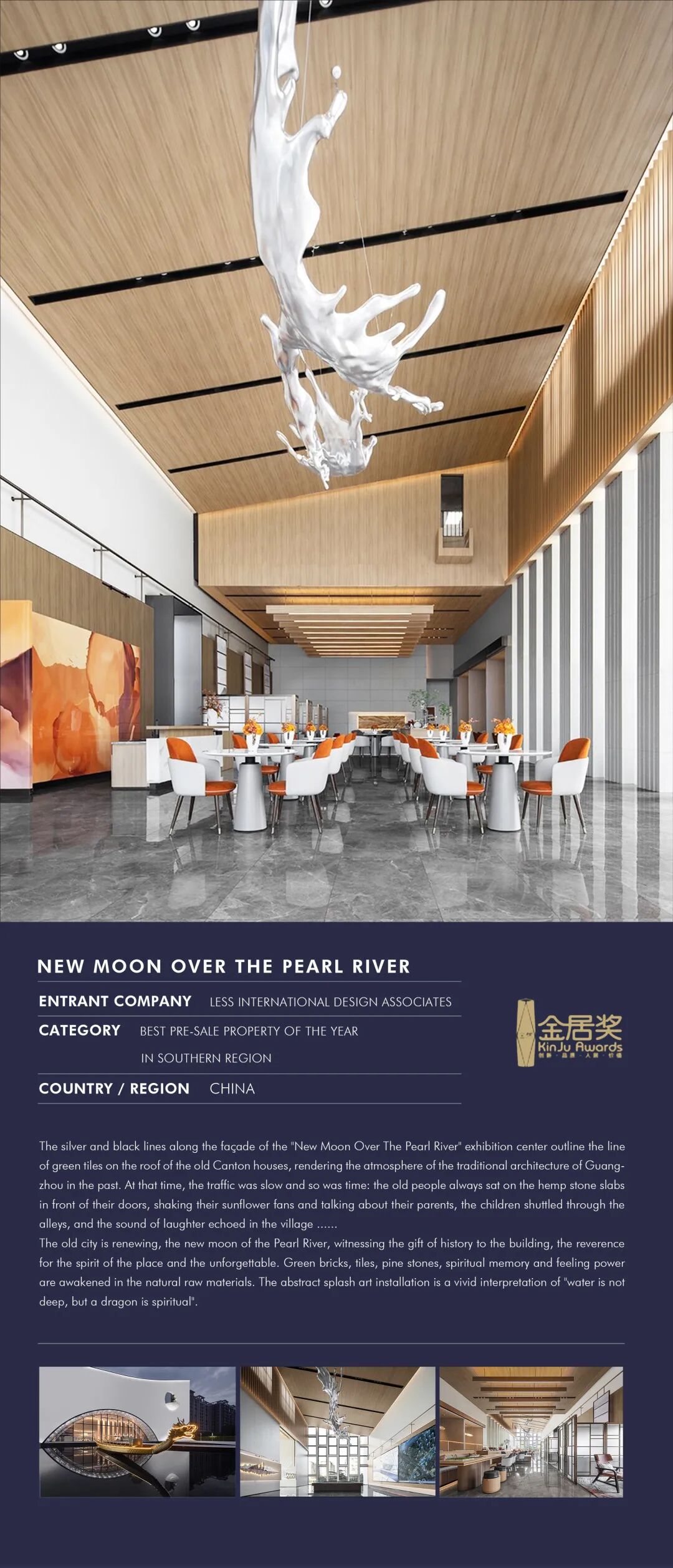 LESS力思国际作品『景业·珠江新月』展示中心项目荣获2022金居奖综合类南部地区最佳预售楼盘奖,设计能力再获业界认可。