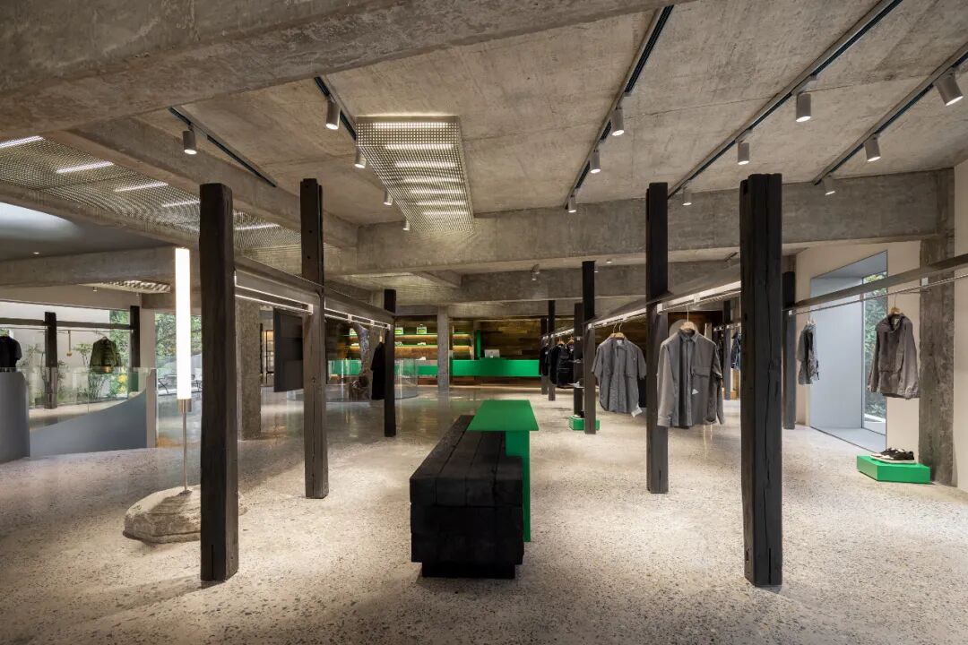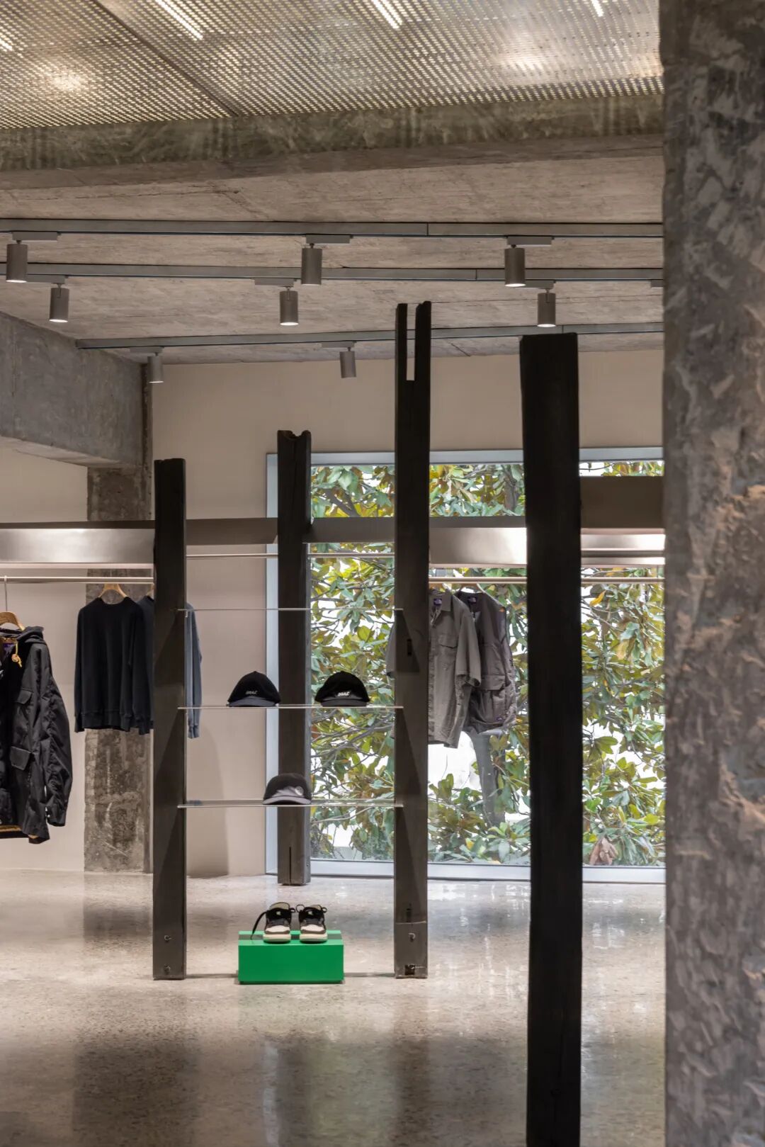 二层服装售卖区,将空间处理为毛坯,让产品自己发声