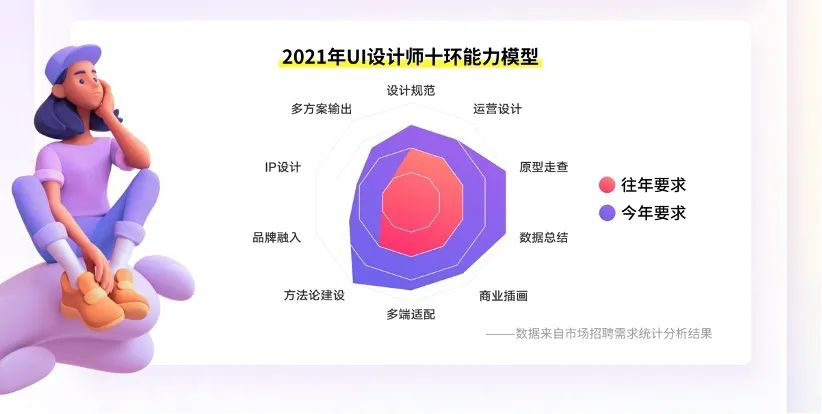 前阵子跟一个在大厂的UI设计师聊天,他说他们团队发出去的高级UI设计师招聘需求,薪资待遇都很好,但却一直没有招到合适人选。