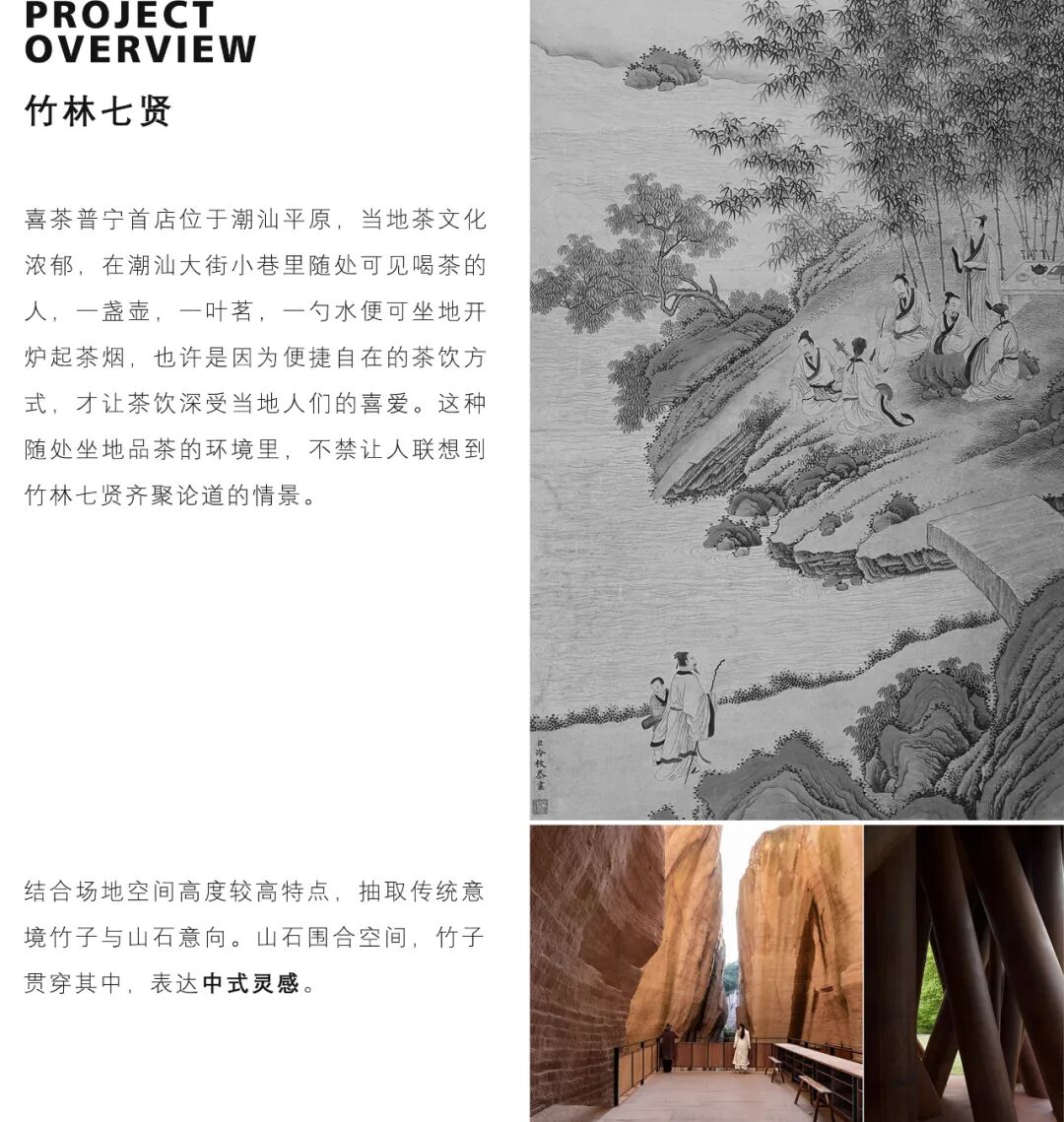 UND设计事务所设计完成的喜茶·普宁星河Coco city灵感店,巧妙援引竹子与山石的文化意象,打造自在悠然的中式茶饮空间。
