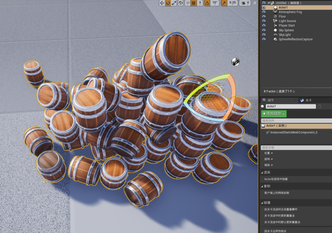 在不退出Physical Layout模式下,点击“Bake Selected Actors Into InstanceMesh”,选择的Actor会转换为实例模型,