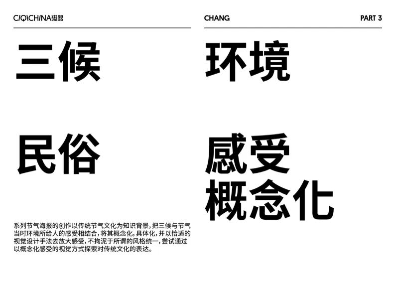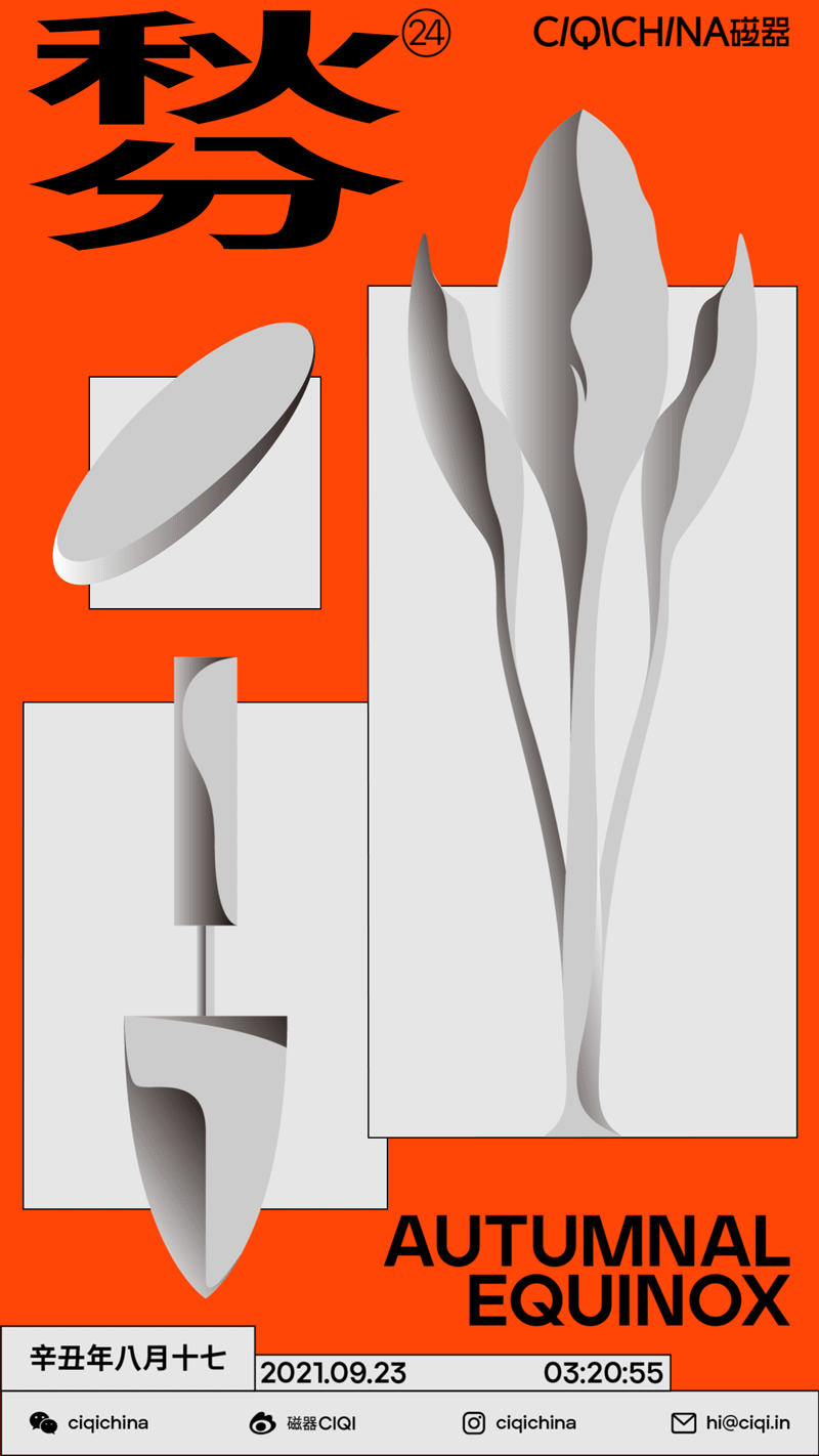 CHANG 常硕:关于这个问题,可以从两种角度思考,第一种是品牌策划角度,第二种是设计输出角度,即在设计输出的时候,怎么去找到更适合自己的品牌设计语言与风格。我重点讲下第二种,首先要和品牌的小伙伴拉齐共识,充分了解自身品牌基因,形成清晰概念,比如磁器CHINA的品牌基因是传统文化与时尚。然后在这个过程中不断去输出,不断去尝试,不断得到反馈,然后你就会发现品牌风格越来越清晰,比如说我前面讲到的节日节气系列海报,就具有非常强的递进关系,这个系列的品牌设计语言与风格,就是在这个过程中逐渐形成的。