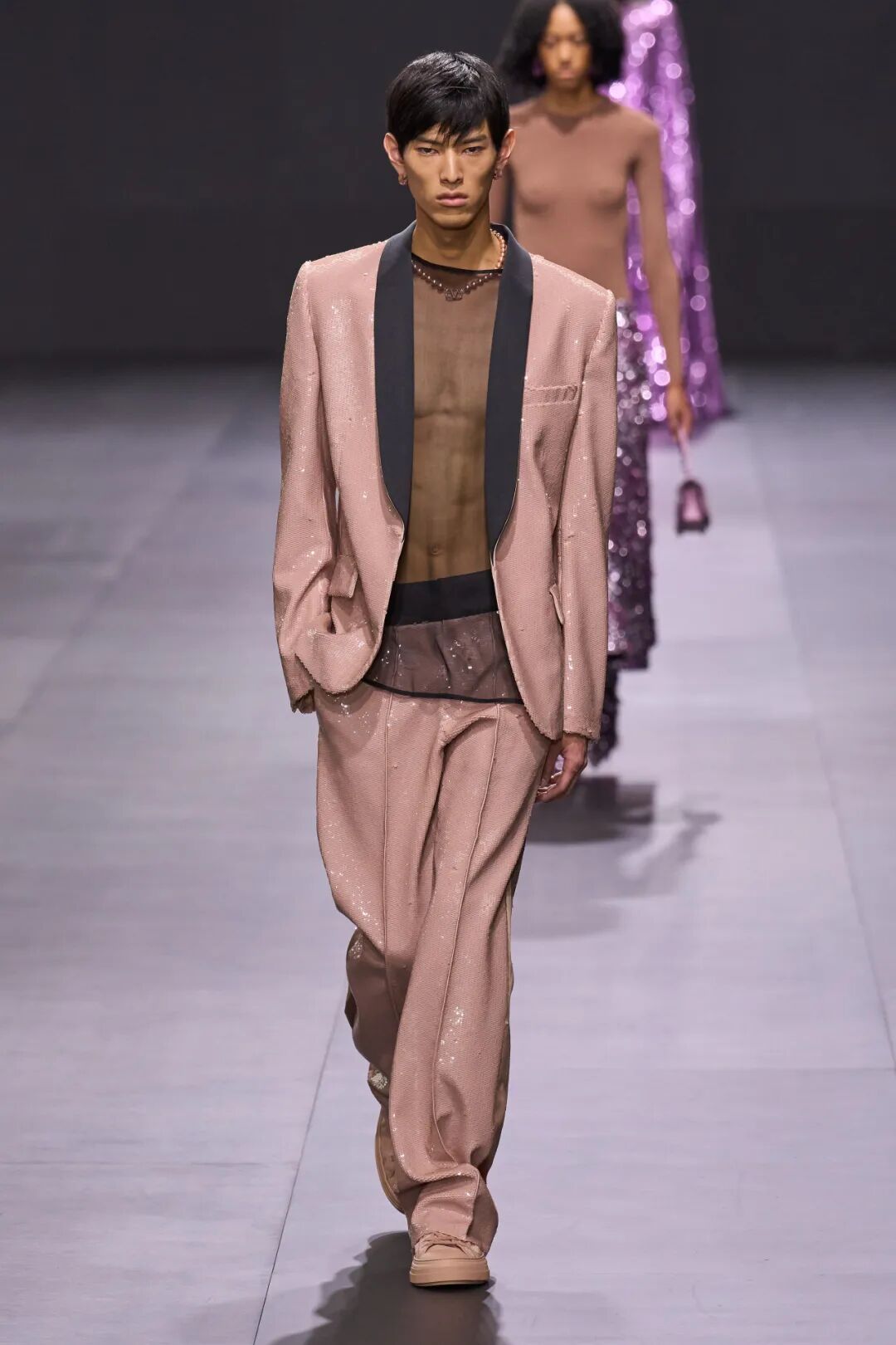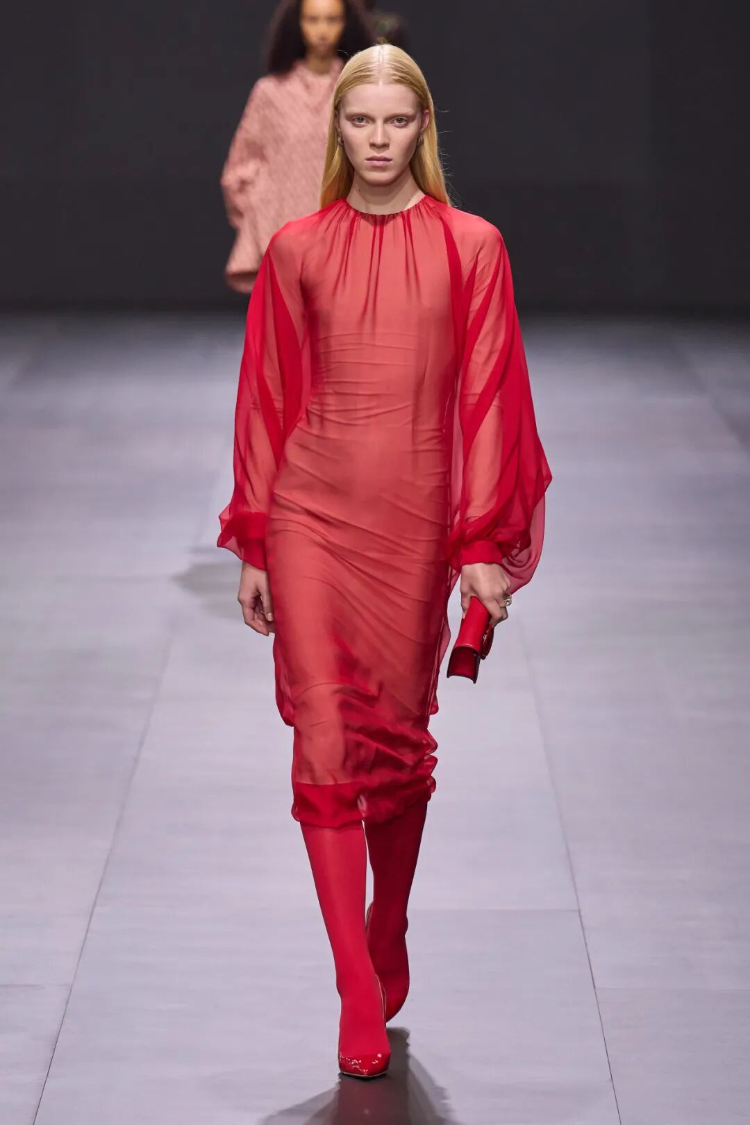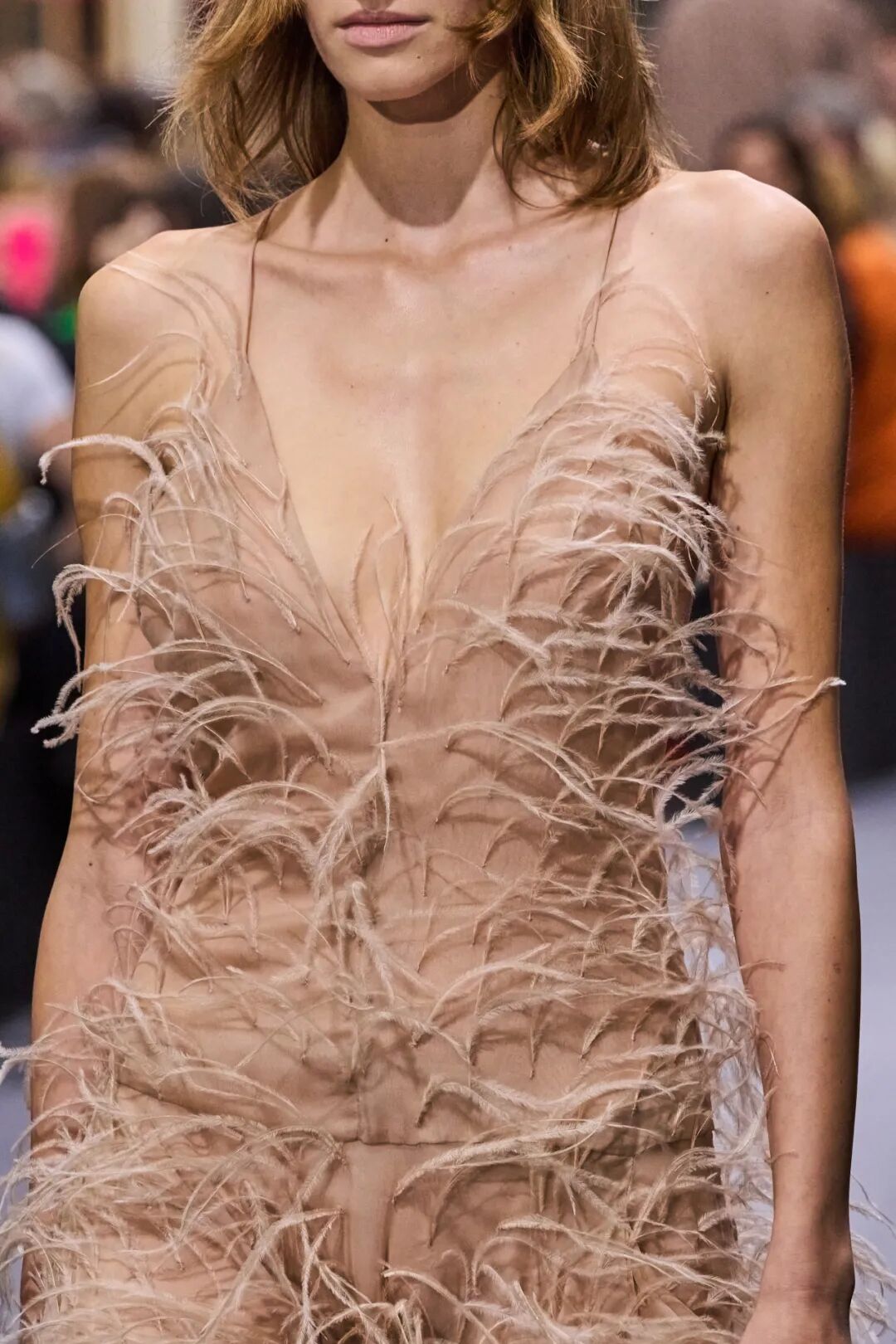 Valentino2023春夏系列以“Unboxing Valentino”为名亮相巴黎时装周,设计总监PierpaoloPiccioli在本季摒弃亮眼的玫粉色,专注于做减法,让服装回归本质。利落的裁剪,参考了艺术家Lucio Fontana 撕裂的画布系列作品。加上梦幻的羽毛、扎眼的亮片、轻柔的薄纱,为纯粹的设计增添时髦趣味,留白而不空洞。同时,经典的Valentino红也回归秀场。