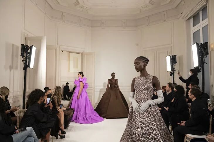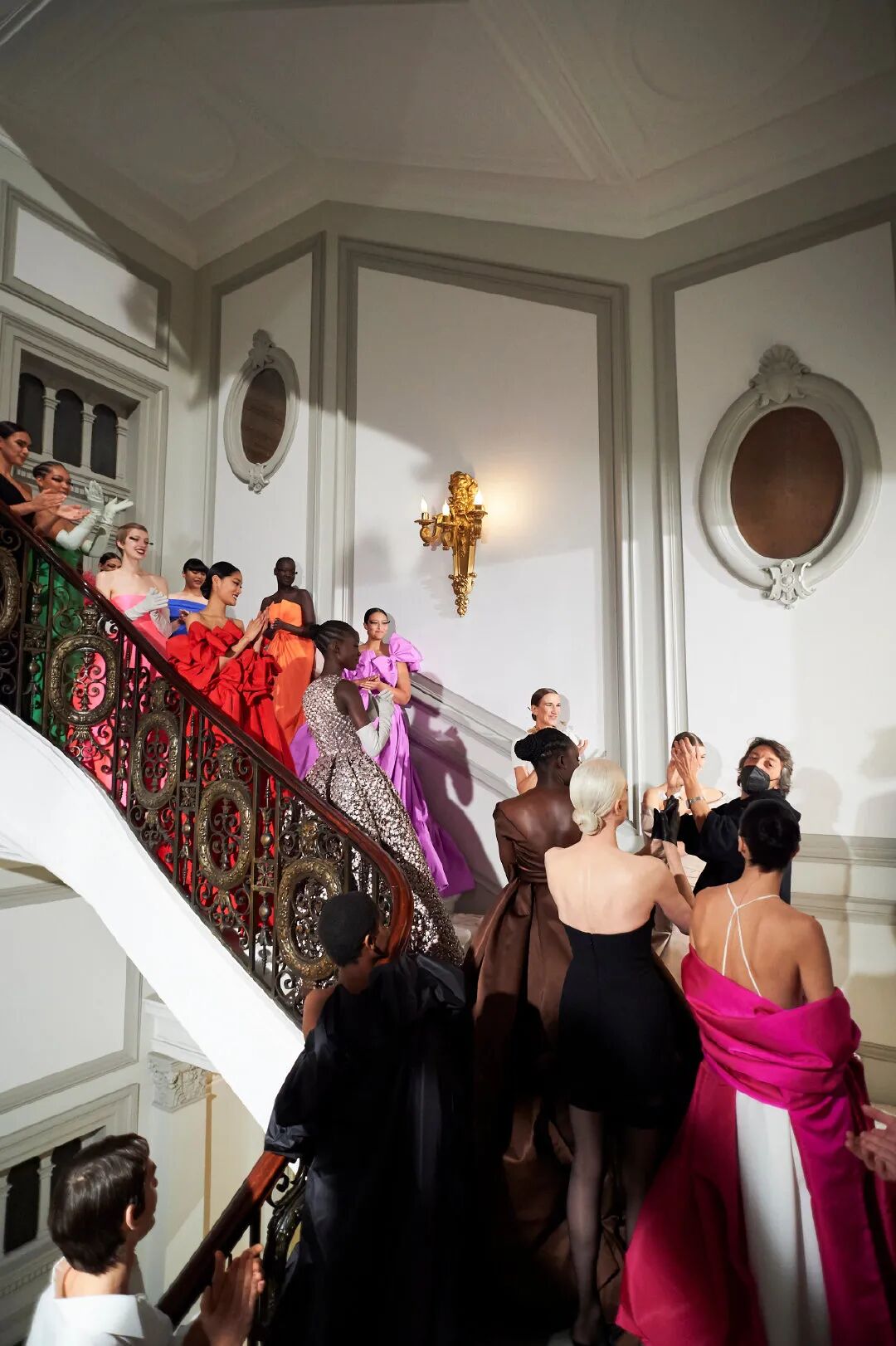 Pierpaolo Piccioli打破惯有的只有高大、苗条和年轻的身体呈现古典美的规则,这一季选择了更丰满、更年长的“模特”阵容,从0码到10码,选用不同体态和年龄的模特阵容来演绎2022春夏高定系列。