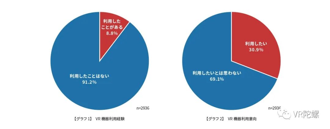 ■使用过VR头显的用户少于1成以下,但今后使用意向者超过3成。