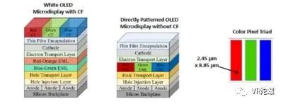 其第一代显示器将采用WOLED-CF架构,该架构使用带有彩色滤光片的白色OLED发射层。这是几乎所有Micro OLED显示器都在使用的设计,不过该设计缺点在于会严重降低显示器的亮度和发光效率。