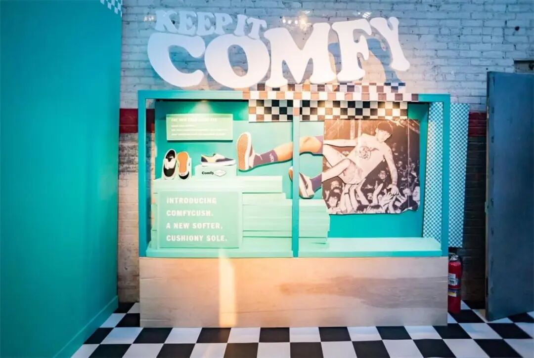 为了讲述一个关于舒适的故事和Vans新鞋的全球发布,活动策划人重新构想了年轻人生活中“最重要的环境”之一——高中。活动现场被虚构成了以新产品名字命名的“康菲.库什高中”,通过将产品与品牌文化融入高中生活场景,讲述了产品技术与品牌文化的故事。“康菲.库什高中”吸引了运动板鞋粉丝和时尚媒体的注意力,成为了Vans有史以来最具创意和盛大的发布会。