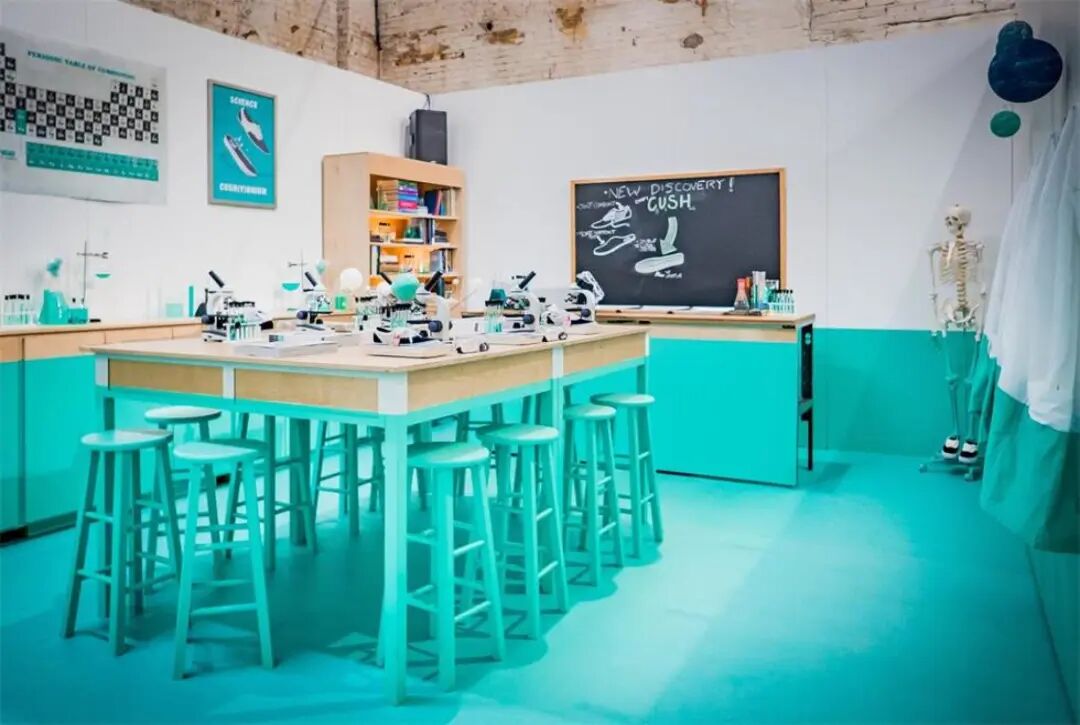 当“同学们”来到学校首先进入了“更衣室”,每位客人都会收到了一双舒适 ComfyCushComfyCush(康菲.库什)作为礼物。然后将参加一堂“科学课”,课堂上通过一个实验,新款ComfyCush(康菲-库什)使用的技术被展示在客人面前,然后进入“历史课”,著名的滑板手托尼·阿尔瓦做了一个简短的讲座,介绍了新款ComfyCush(康菲.库什)的发展历史。一个“高中游行乐队”贯穿了整个现场,记忆中的高中音乐与现场的学校布局,为客人们带来沉浸式的品牌体验。最后在“高中体育馆”,著名说唱歌手李尔·韦恩进行了表演。