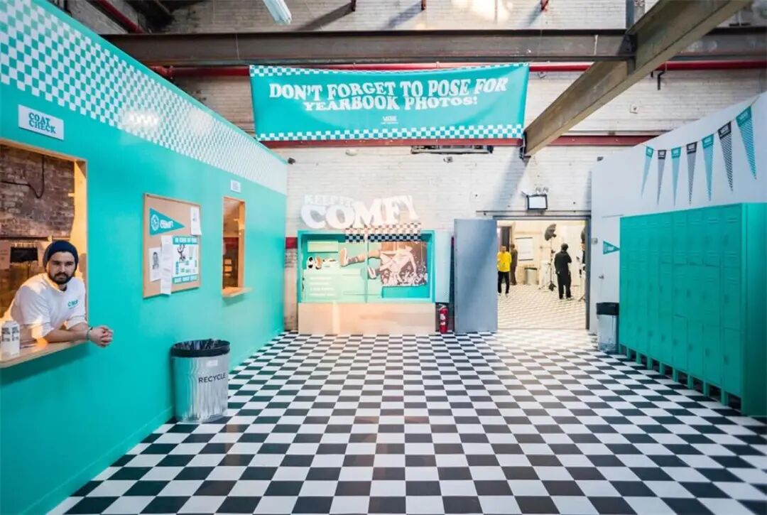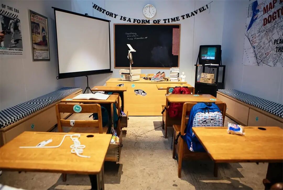纽约市布鲁克林区的布什维克的一个巨大仓库被选中作为发布会的现场,在两天的时间里,构建了一个高度沉浸式的“中学环境”。“班级注册区”,“两个更衣室”,“拍照时刻”,“更衣室走廊”,“食堂”和“体育馆”。除此之外,还包两个设备齐全的“教室”,客人们将在这个特殊而有趣的环境里详细了解VANS的一切。