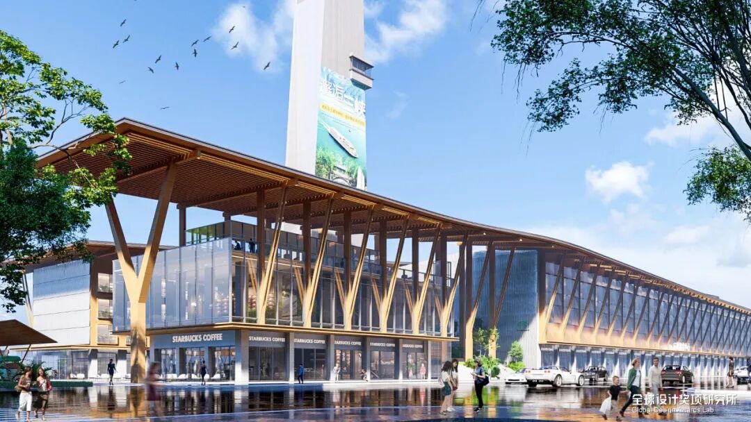 我们的解决思路是通过对立面和屋面的拆分,从视觉上消解建筑狭长而庞大的建筑体量,在平面上,通过对建筑的局部拆除,形成体量的错动,进一步消解建筑体量。翘曲而又分裂的双坡屋面,足以形成游客窥见天空,瞥见江景的视线缝隙,建筑由一堵隔在行人和江面之间的高墙转变为行人与江面互动的有趣视窗。被拆分后的建筑体量又统一在如同江面一般缓缓流动的大屋面之下,屋面所强调的横向线条和保留塔楼的竖向线条形成了新的对立和统一。支撑大屋顶的三角构架灵感来自于三峡地区吊脚楼斜撑这一古拙而又充满力量感的结构构件,规律性重复的三角构架也为建筑注入了韵律感和统一的秩序。变化的屋顶与江水一同流动,高耸的塔楼保留住建筑过往的记忆,双坡屋面和三角斜撑形成的山墙立面像符号一般唤起了人们对吊脚楼的建筑印象,共同构成了与场所和历史对话的地域性现代建筑。