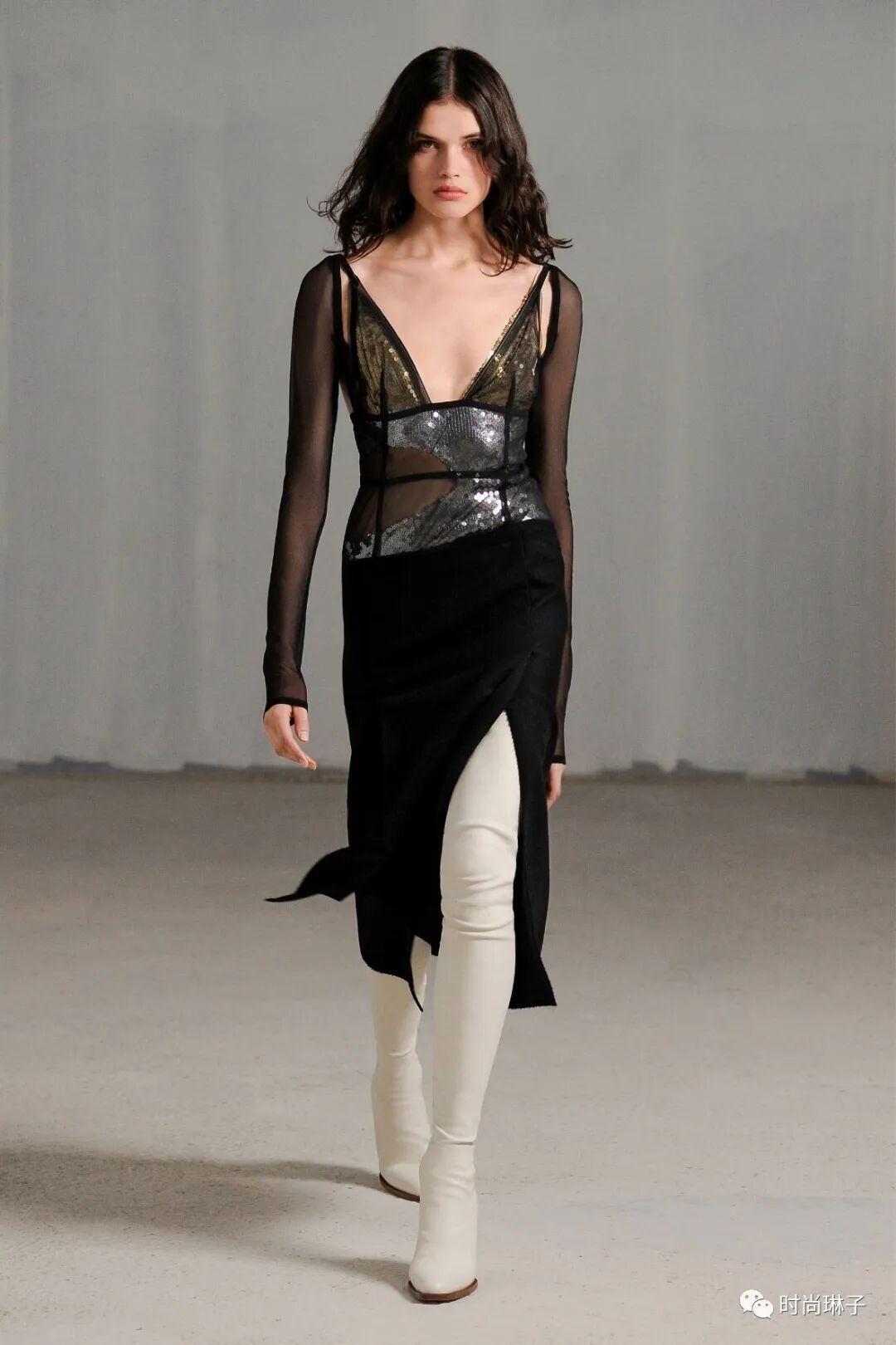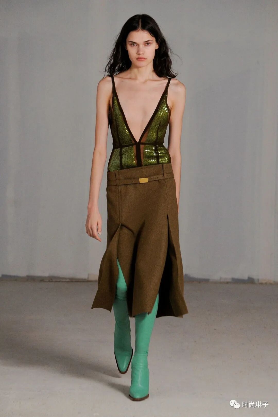 无论是廓形外套,条纹针织衫,吊带上衣,或是开叉裙装,给人一种清晰的感觉,一种不再平静的自信。