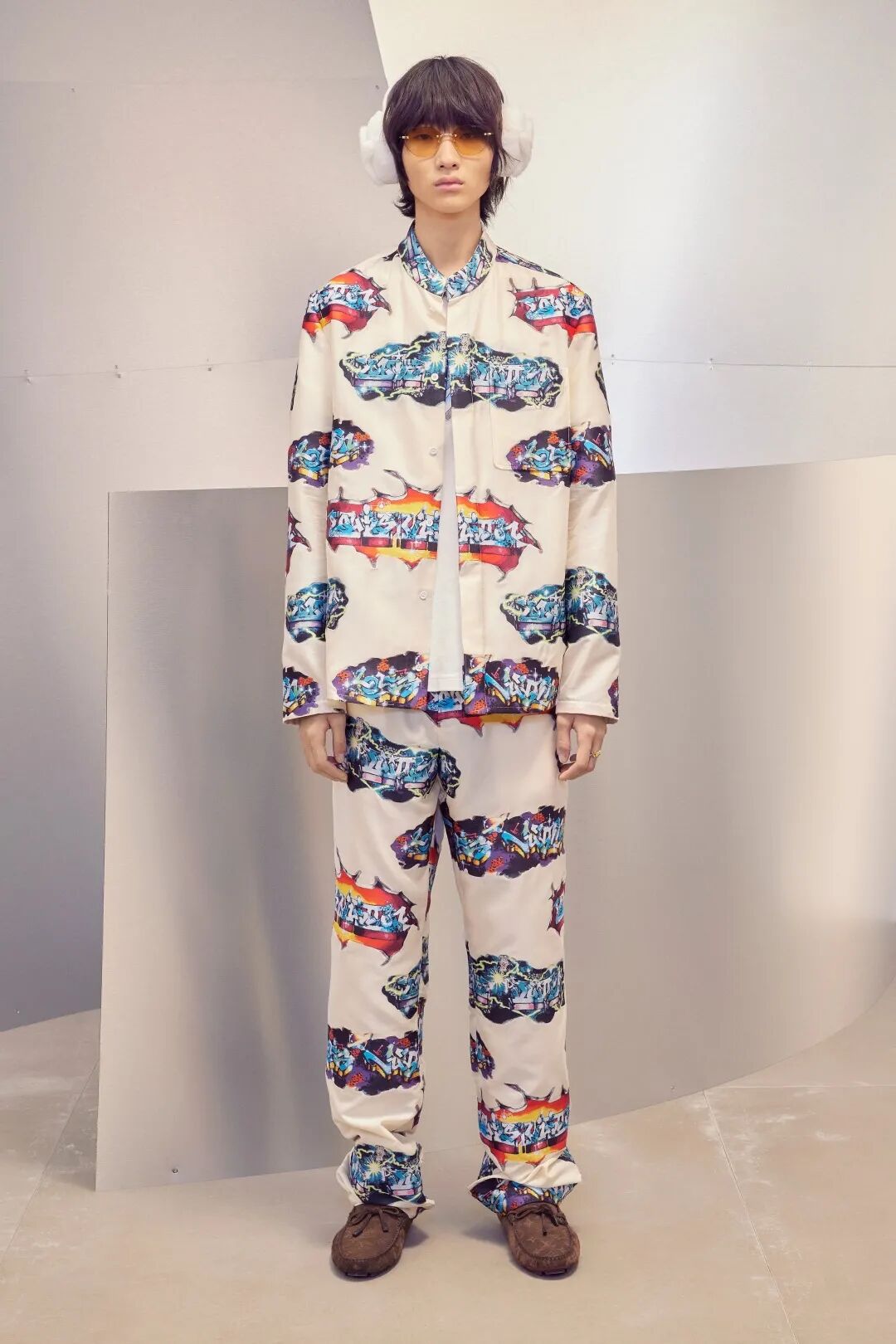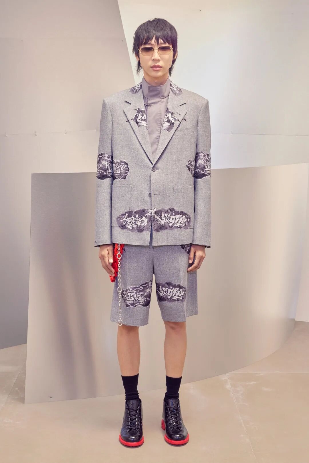 此次Virgil Alboh与米兰纹身艺术家 Ghusto Leon合作,将带有 Fil Coupe、提花和刺绣的涂鸦西装和工装融入到系列中。