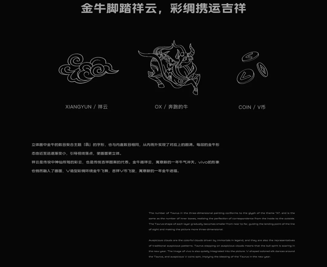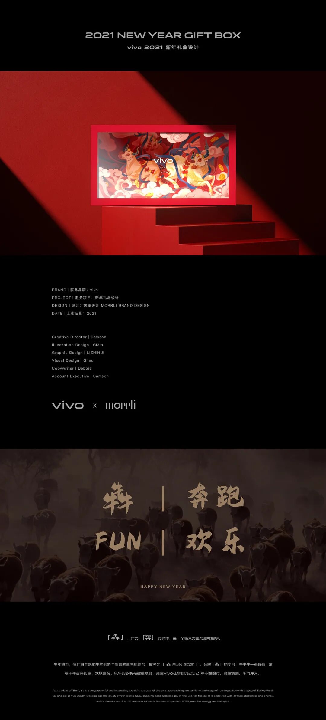 每一年的新年礼盒都是人们关注的焦点,礼盒不仅是节日的代表,也是一种仪式感,回顾2021VIVO推出的新年礼盒,整体将奔跑的牛与新春的喜悦相结合,取名为「犇」FUN 2021。将“犇”字拆分,三个“牛”寓意666,品牌也在崭新的一年继续前行,能量满满,牛气冲天。