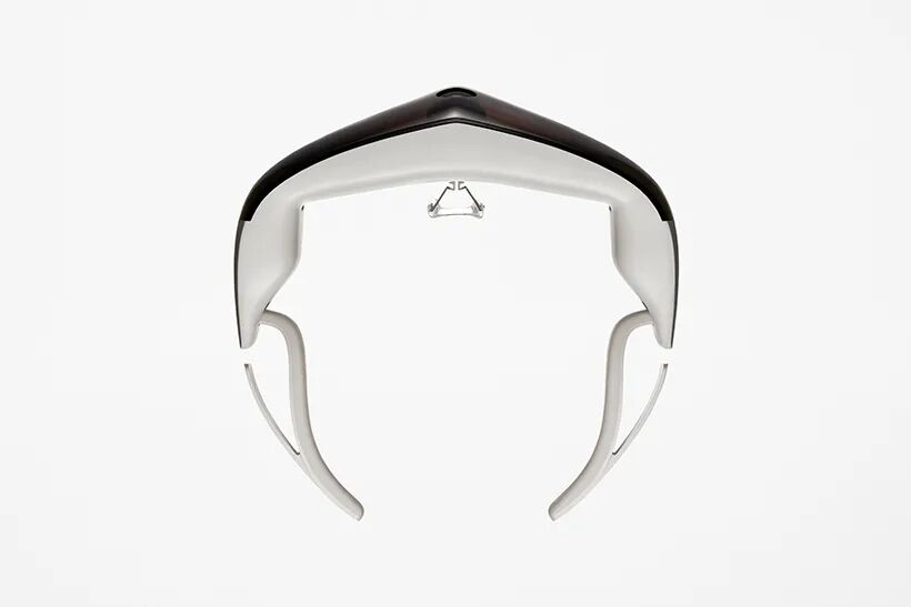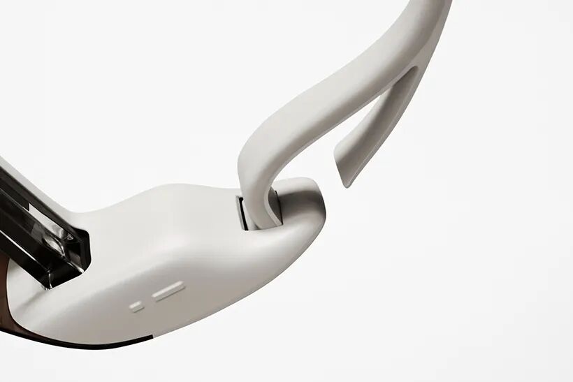 除摄像头外,该设备由一个足够透明的前盖遮蔽,使佩戴者能够带着外面的世界感四处走动,但又足够不透明,以便轻松查看显示屏。广角镜头取代了标准的相机镜头,扩大了佩戴者的视野,减少了周边视力低下的人在走动时撞到人或物体的可能性。此外,可以为需要矫正视力的佩戴者安装矫正镜片。镜腿由尼龙树脂制成,佩戴更舒适,并防止在受到物理撞击时被碎片损坏。除了侧面突出的 ViXion 标志线外,在右镜腿的下侧可以感觉到一条线,可以用指尖刷区分左右和右侧。