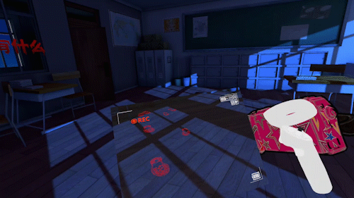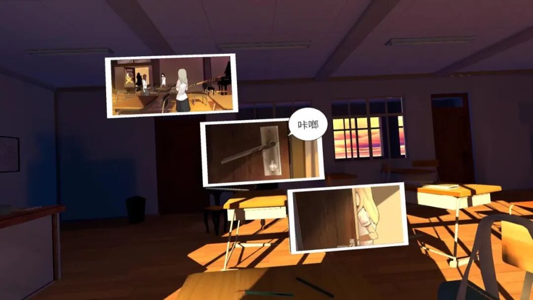 同时与传统观漫不同的是,VR互动漫的增强的音效,如握紧DV时“咚咚咚”的心跳声,耳边的“喘息声”,亦或是夜晚校园里阴森的BGM,还有同学们放声大笑的声音.....