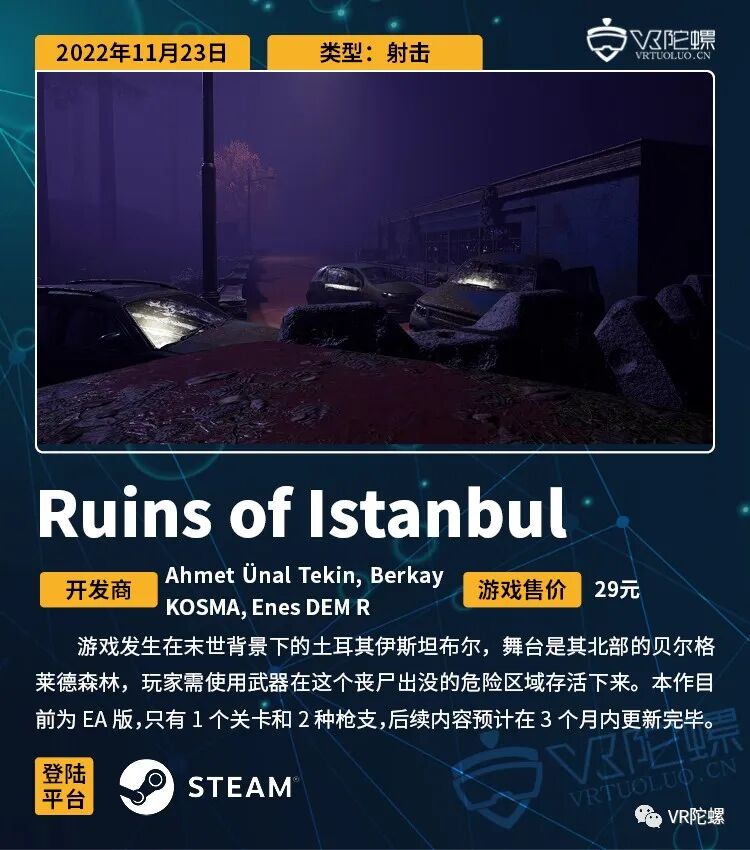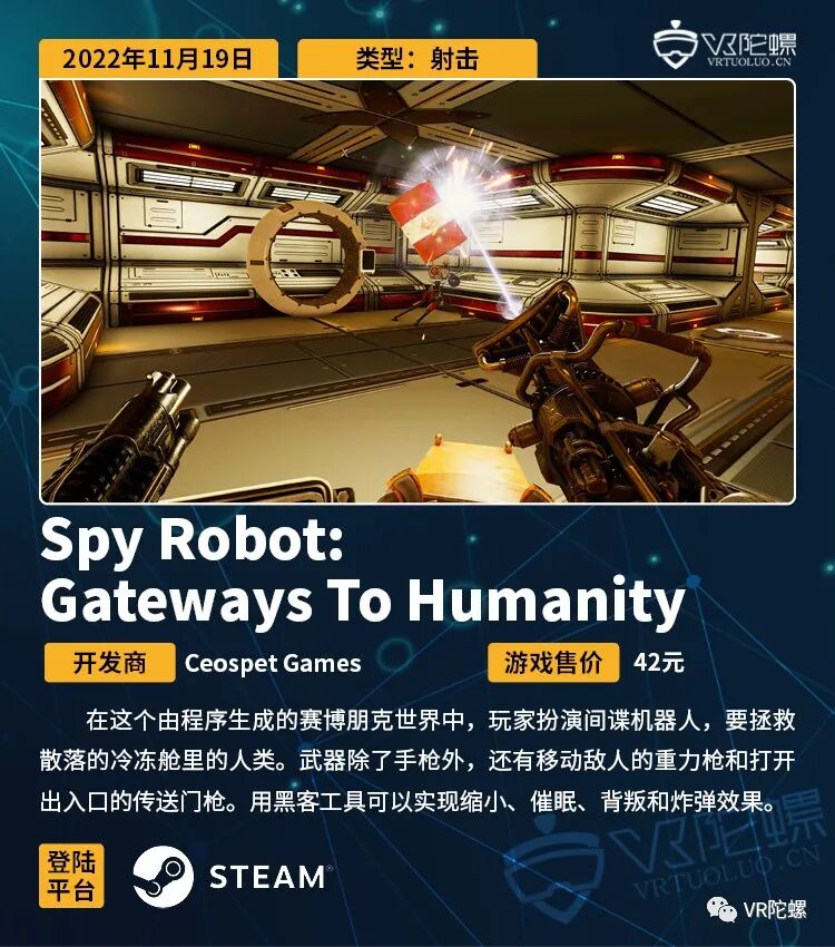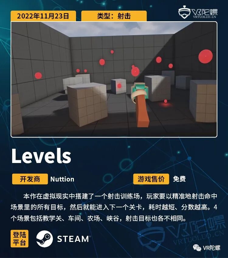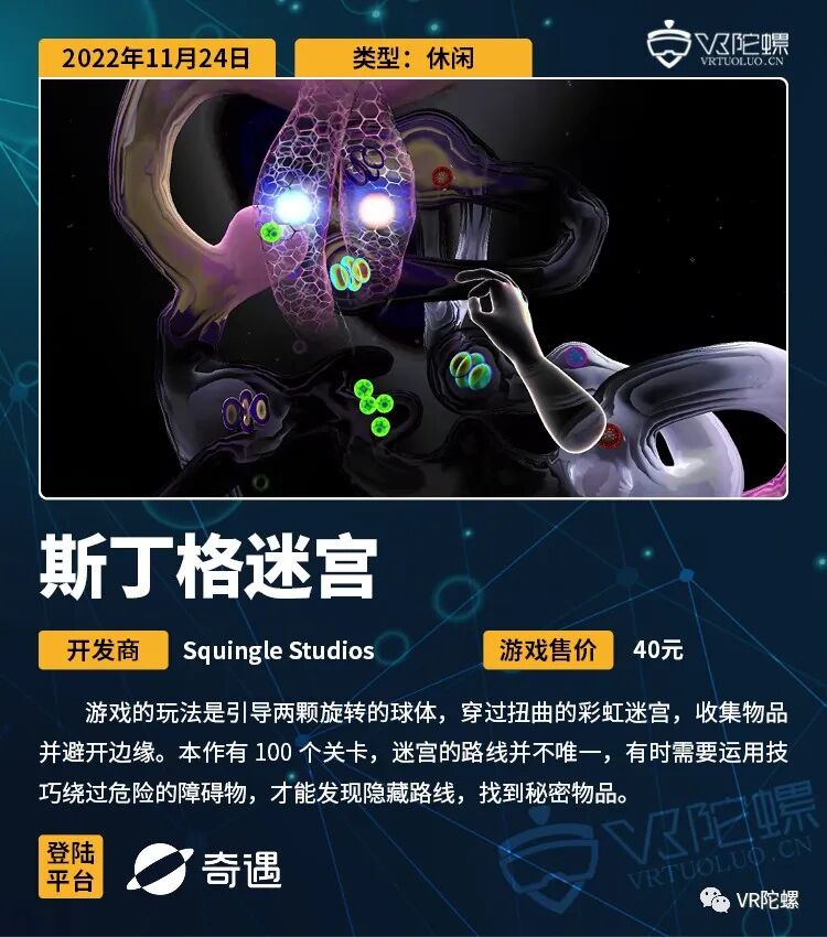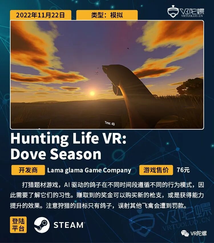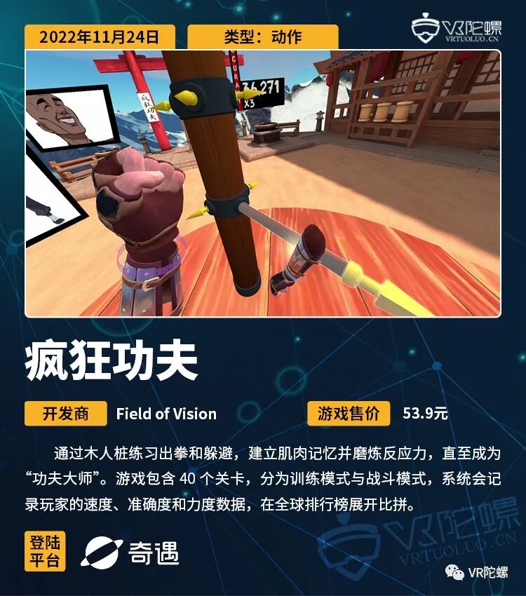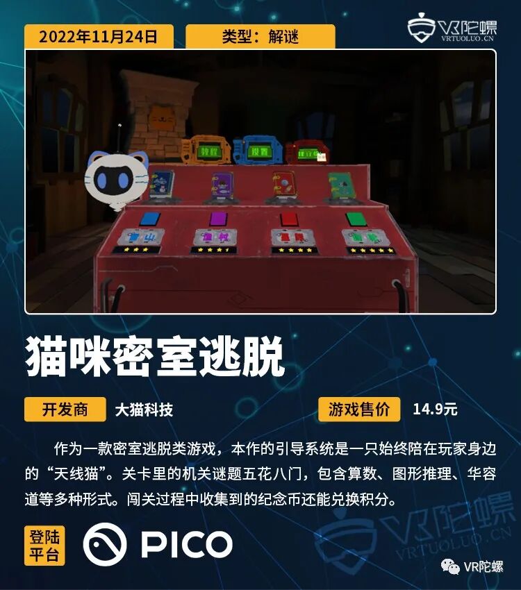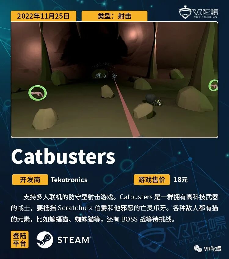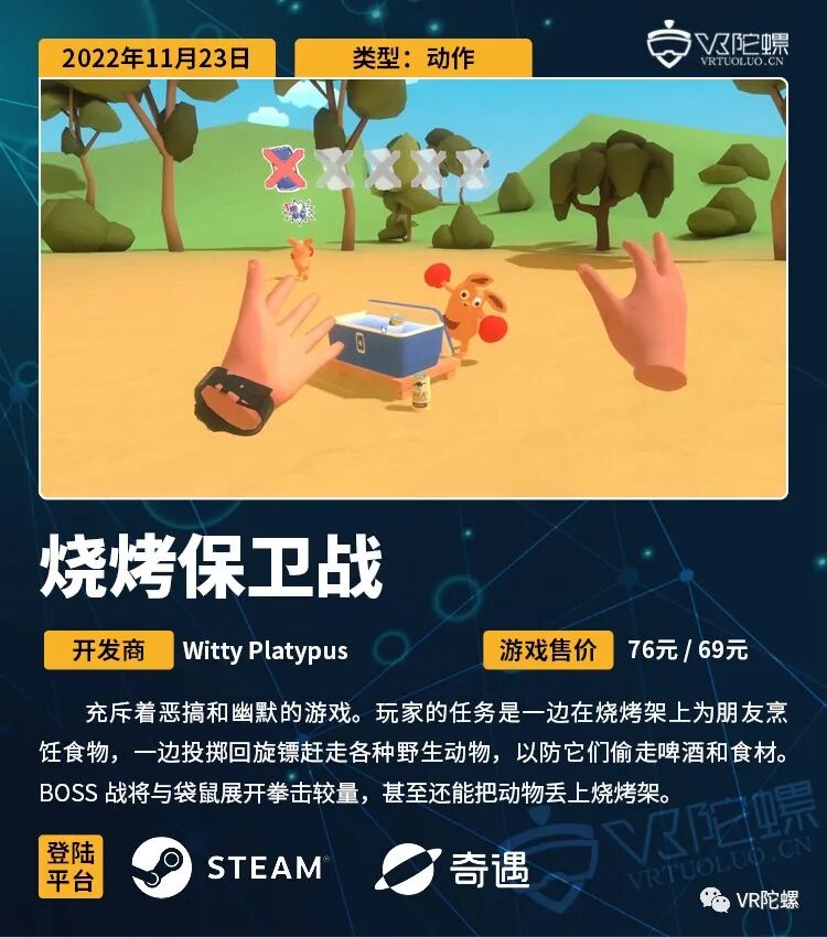 本次周报统计11月19日~11月25日期间上线的VR游戏,共计22款,后文按照发售时间排序。截至2022年11月25日,各主要VR平台的内容数量如下: