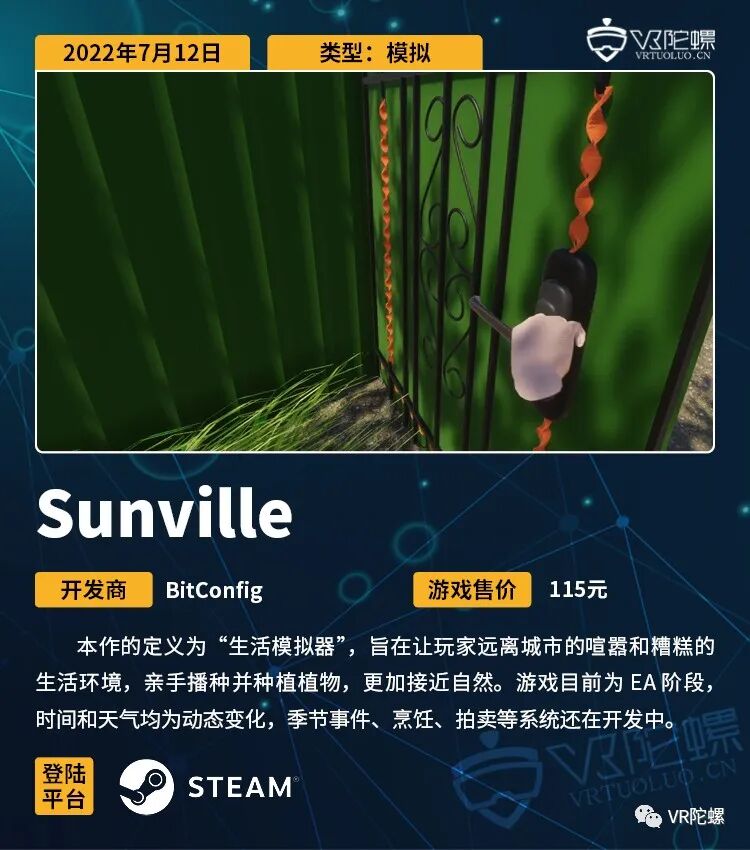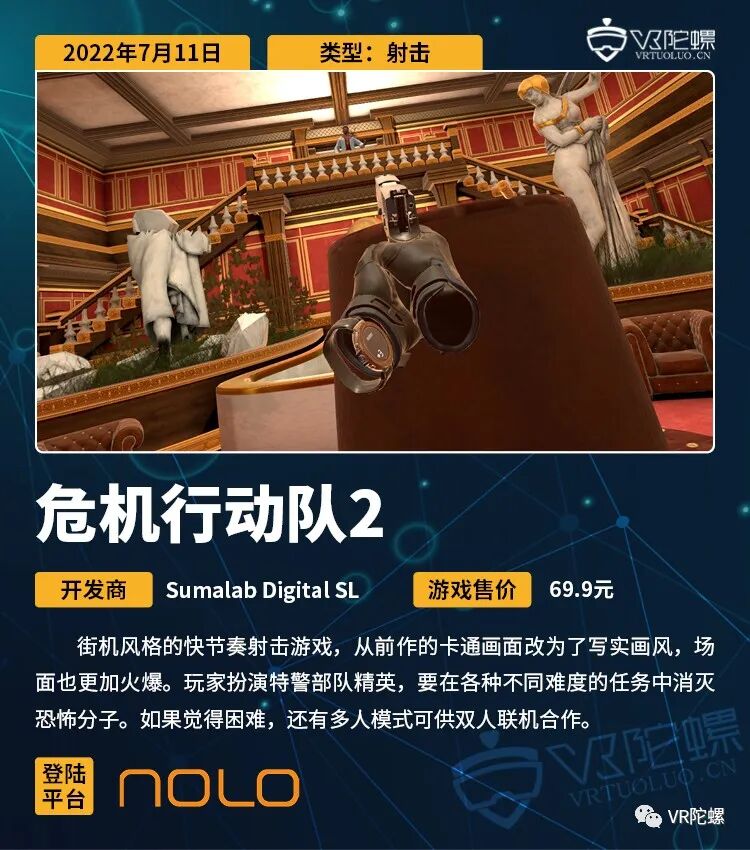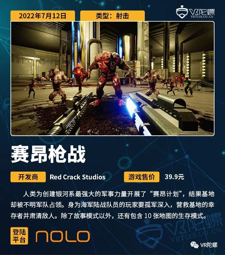本次周报统计7月9日~7月15日期间上线的VR游戏,共计21款,后文按照发售时间排序。截至2022年7月15日,各主要VR平台的内容数量如下: