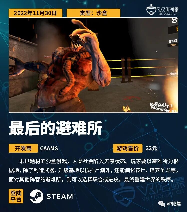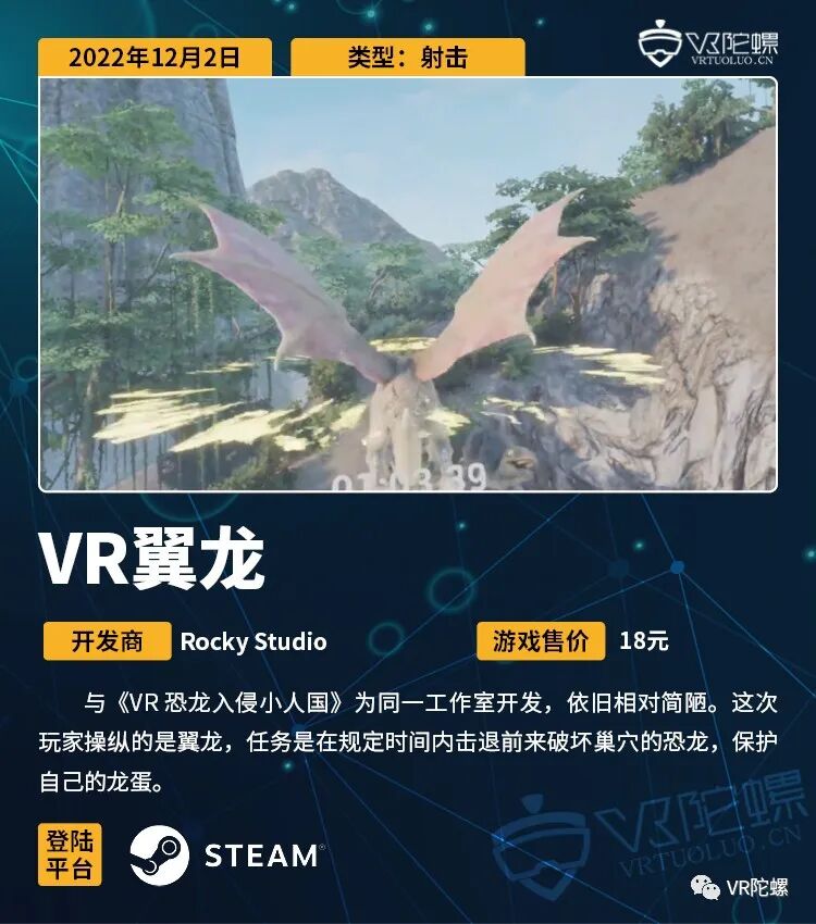 本次周报统计11月26日~12月2日期间上线的VR游戏,共计18款,后文按照发售时间排序。截至2022年12月2日,各主要VR平台的内容数量如下: