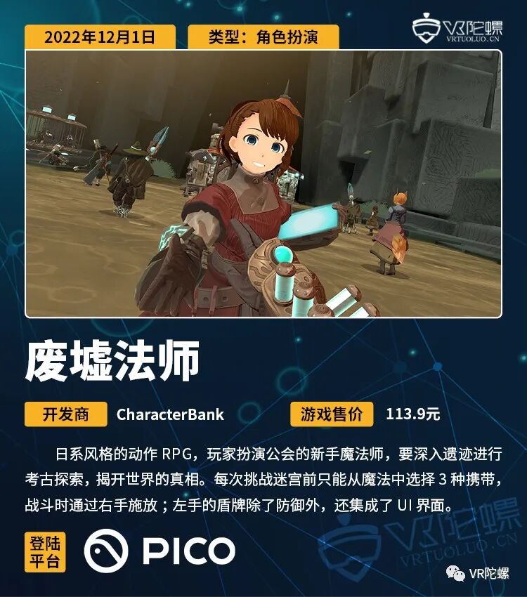PICO方面原本于12月1日上架了日式RPG《废墟法师》,并且宣布在国内由PICO平台独占一年,但该作现因为翻译等问题尚需优化,只能期待优化过后带给玩家更好的体验了。
