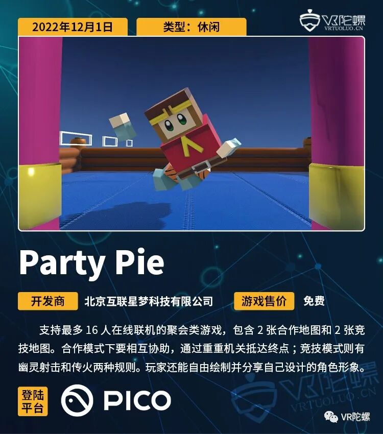 另外《Party Pie》也免费登陆了PICO,这是一款多人同乐的聚会类游戏,玩法简单易懂,感兴趣的玩家不妨下载尝试。