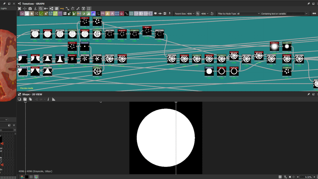 我还借此机会创建了一个圆形的种子蒙版,稍后将在基础颜色中使用,这个想法是代表番茄肉中几乎看不见的种子,不像其他的那样在液体部分。