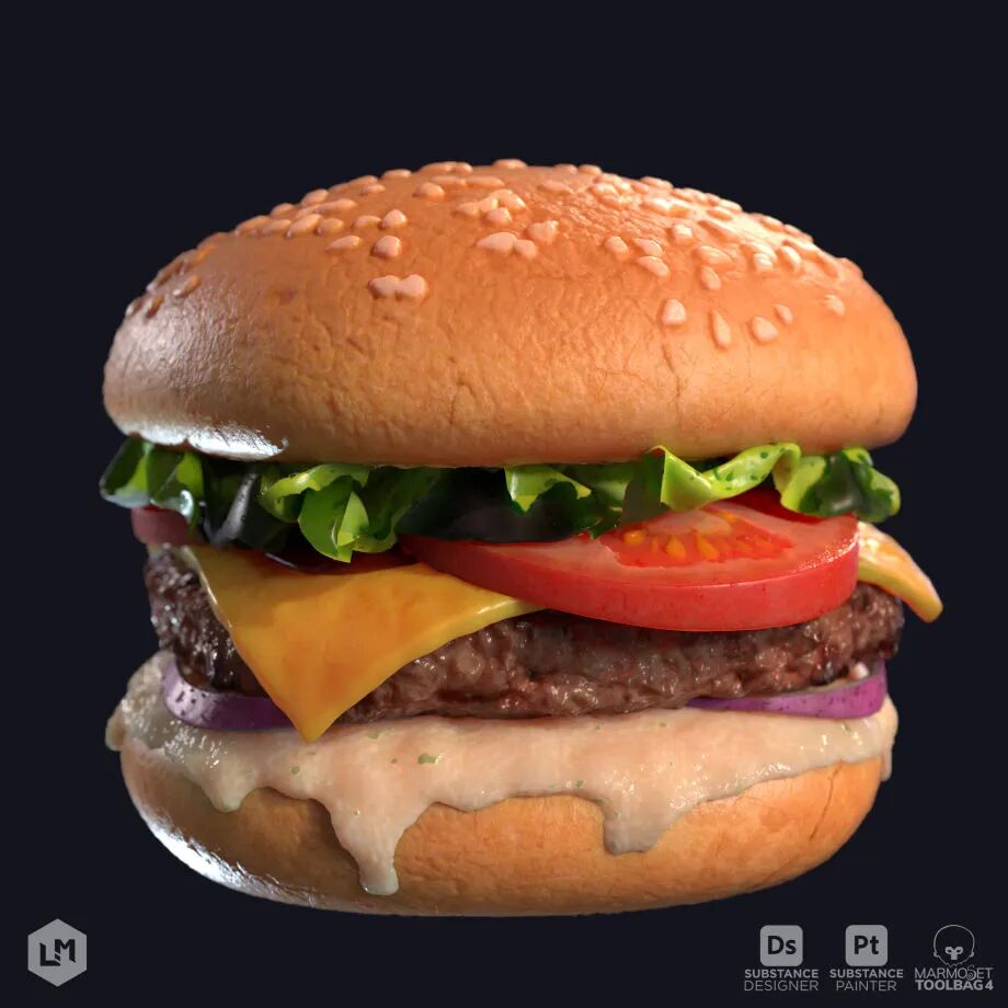 我一直在寻找新的想法来创作我的材料并丰富我的作品集。在搜索中,我意识到食品材料项目很少。前段时间,我看到Pixar 的一篇论文,谈到在他们的影视中制作 3D 食物并使其变得逼真的难度,我挑战自己制作一个完全用我的双手制作的项目,纹理完全在 SD中创建。但为什么是汉堡?我觉得它很好吃,而且它对很多电影都有影响。我想应该没有人尝试在 SD中制作一个完全纹理化的汉堡,所以我决定尝试一下!