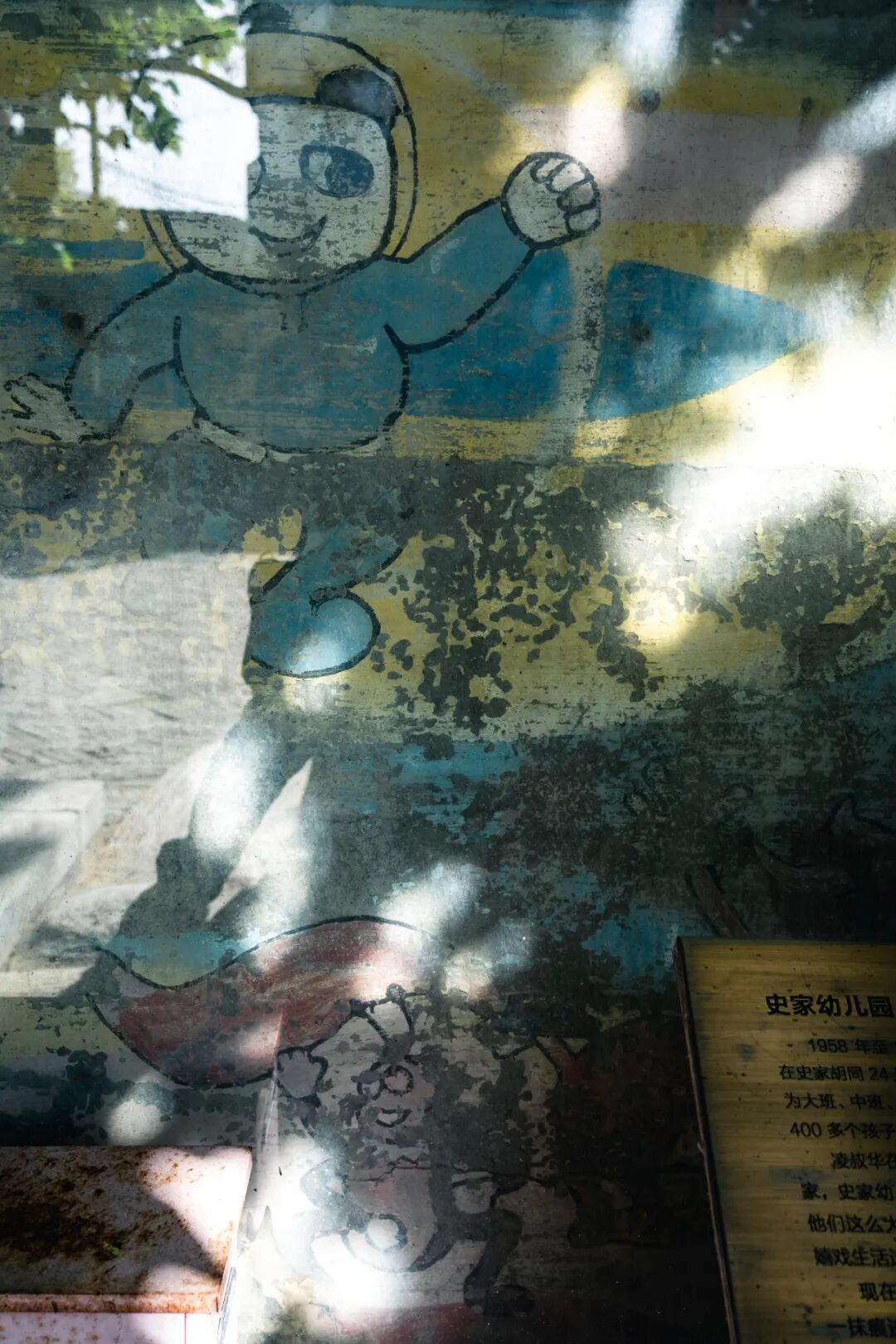 史家胡同博物馆的门头不大,但很好认。进门左侧的墙上,是一幅歪歪扭扭的儿童涂鸦,这是曾经的史家幼儿园留下的痕迹。孩子们在这里蹦跳过,沉思过,欢笑过,又呼啦啦飞出这一方院子,去到院墙外的大世界里各安其所。