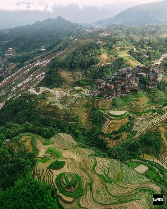 尤其是在疫情的这几年中,出国旅游变得复杂,弗洛里安几乎走遍了整个中国,他不断接触中国景观的多样性,拍摄下了最美丽的风景。中国幅员辽阔,弗洛里安采用的是航拍的形式,从空中捕捉沙漠、树木、村庄、梯田,拍摄的照片让人感受到大自然母亲的伟大,而摄影师本人也被这壮美的景色所折服。