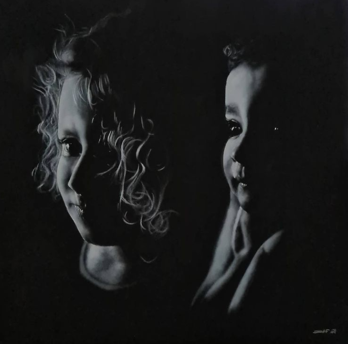 最近有创意的作品不少,翻车的也不在少数,提醒各位当代艺术家,不要为了一时的利益,赔上未来的前程。今天,小绛要跟大家分享的,是一个不翻车的创作,这位艺术家摒弃了传统的白纸黑字,而选择在黑色的纸上画女性肖像画。